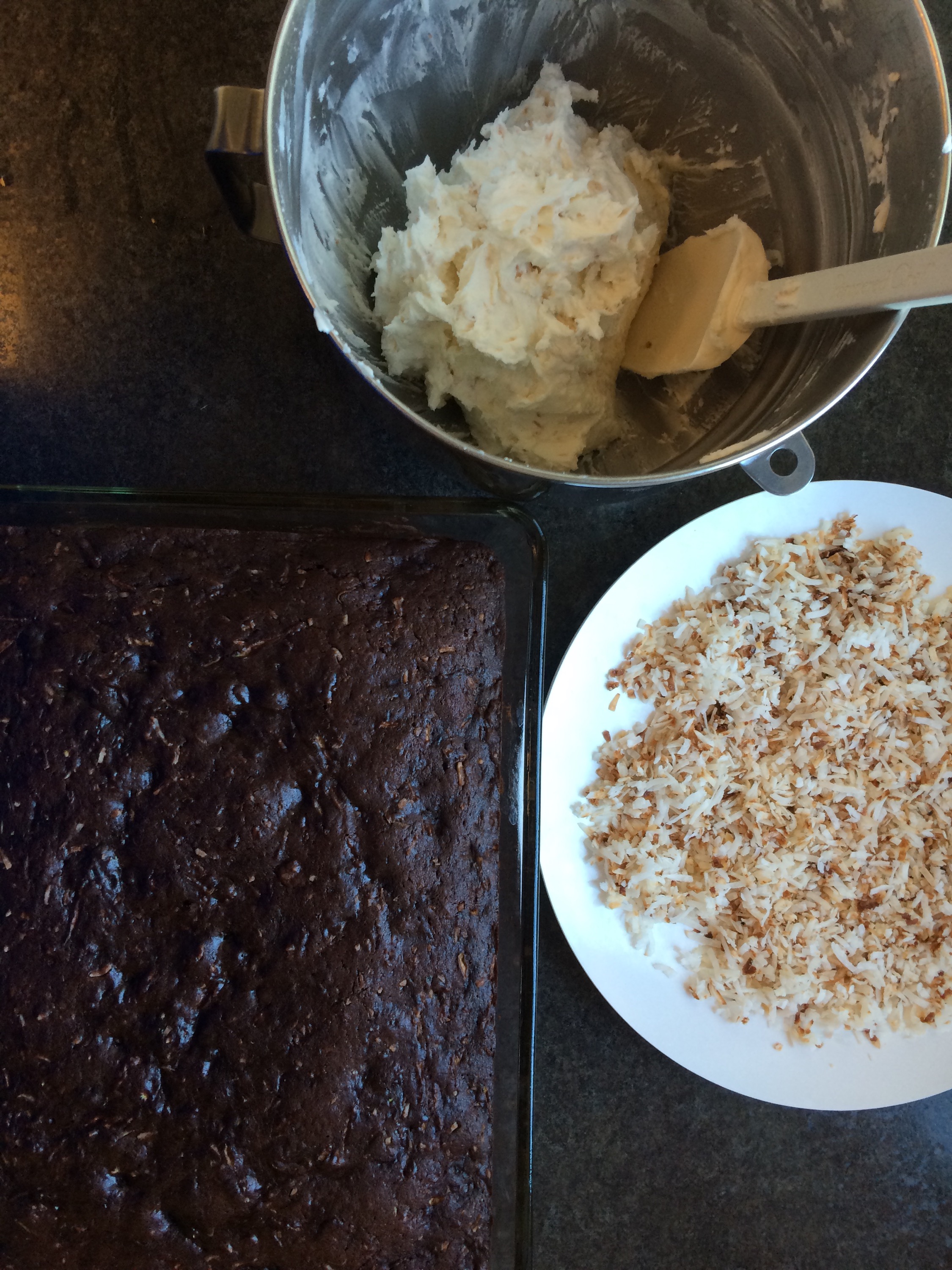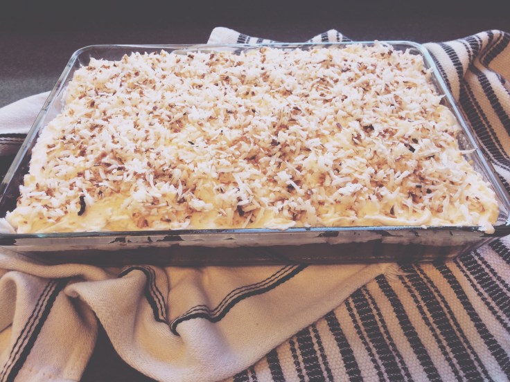 - 1/2 cup toasted coconut, to sprinkle on top of cake