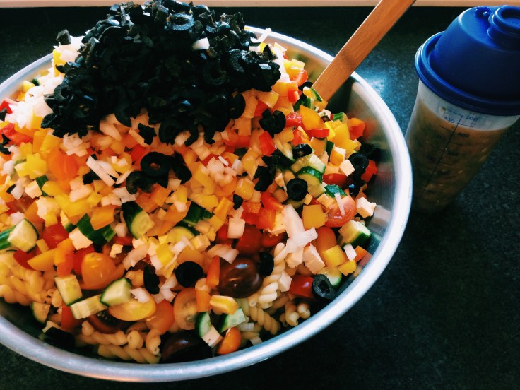 the salad is decent for you… if you want to stay away from the pasta… the gluten… the energy… then just omit the pasta and put it on romain lettuce instead…