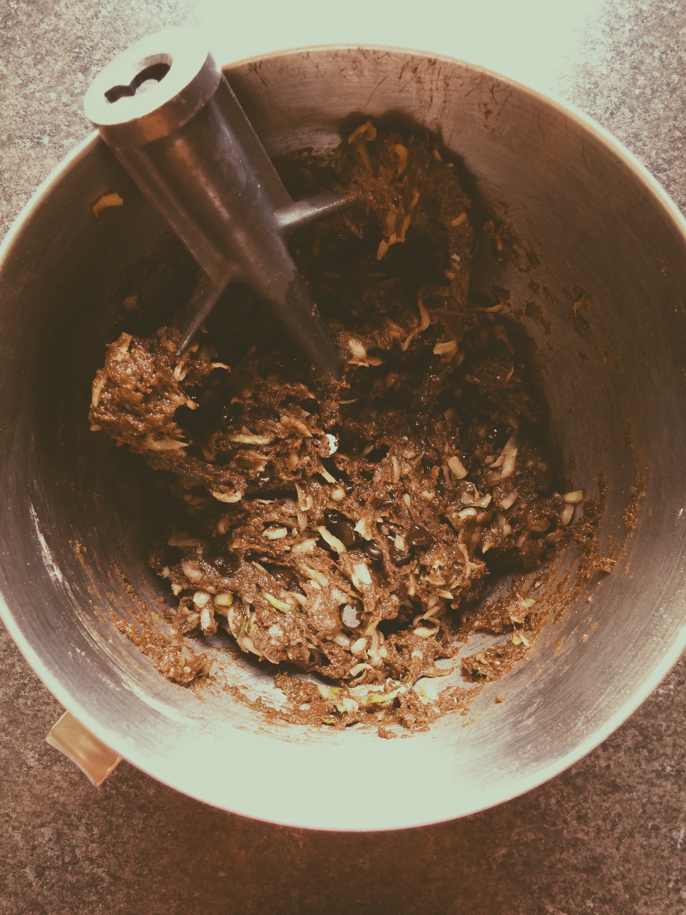 - fold in chocolate chips and pour into a greased 8×8 baking pan