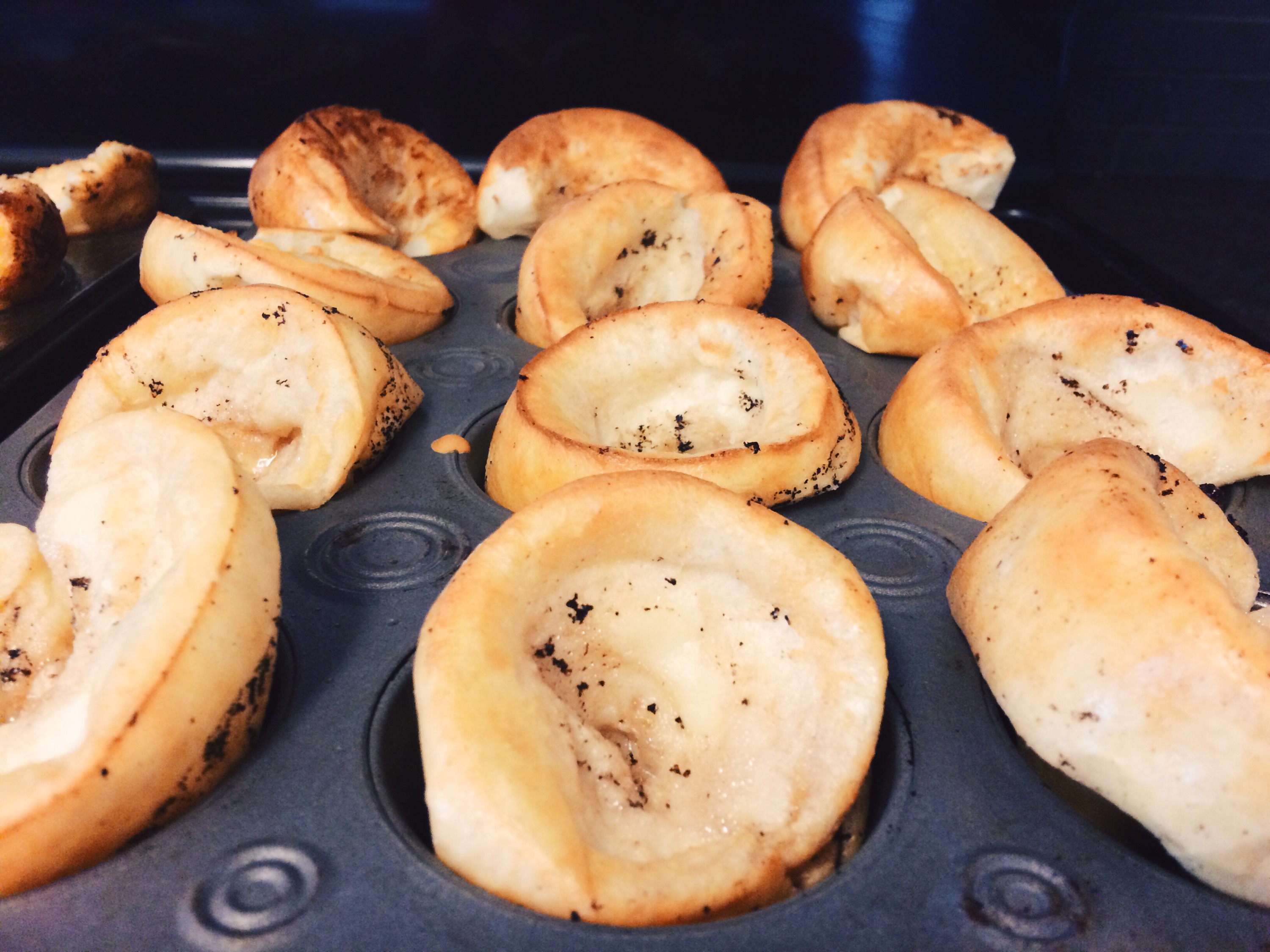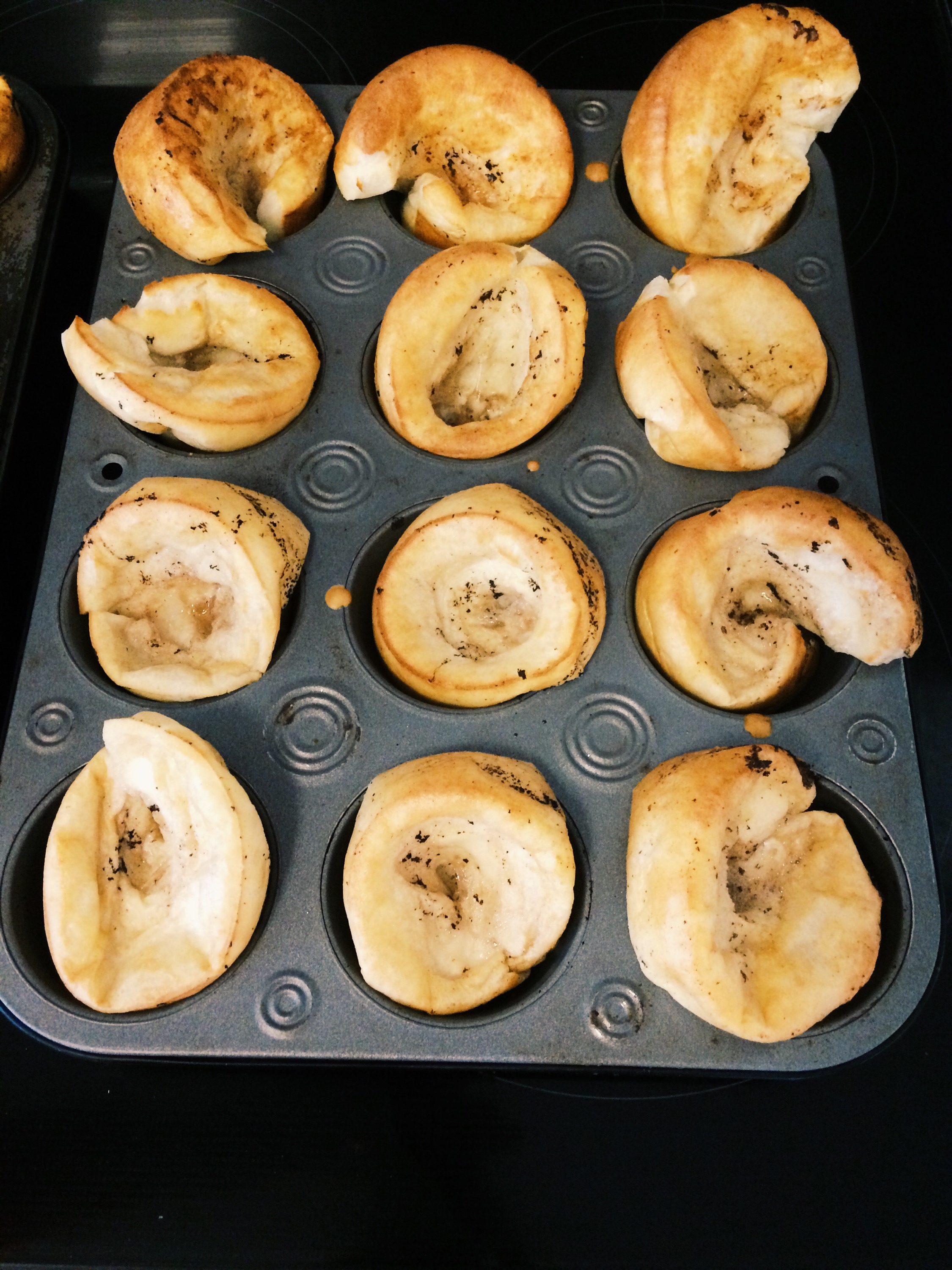 basically if you are eating a roast or any sort of beef dish that has a gravy, you need to make yorkshire pudding… the farmer’s family called them ‘pop-overs’ but I grew up knowing and loving them as ‘yorkshire pudding’… my love for them has never faltered… I love them fresh out of the oven with nothing on them…. or with the meal with some butter and gravy in the centre of them… or later that evening, cold from the refrigerator… oh I love them so… that’s why you need to make 36 of them even if you are not feeding a whole crew of farmers…