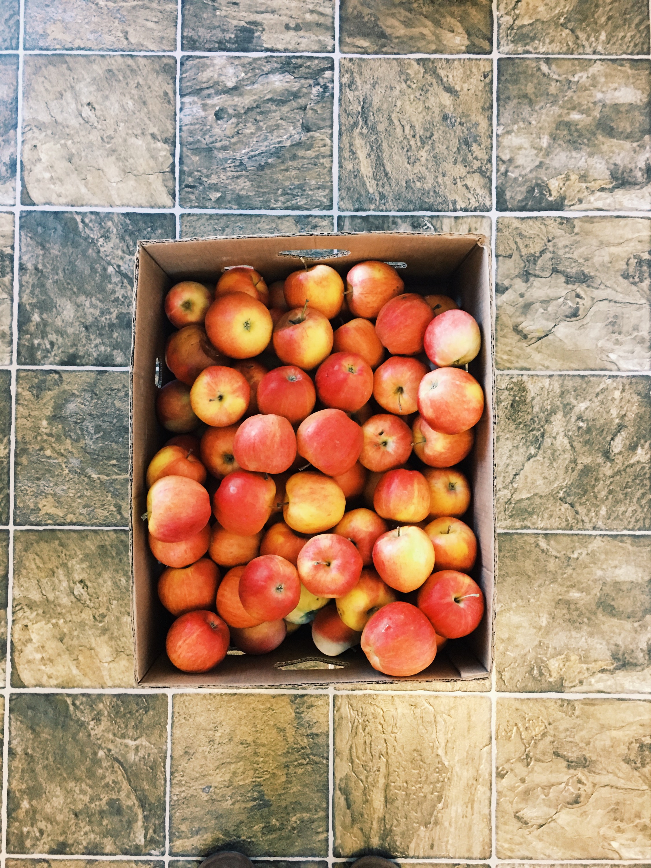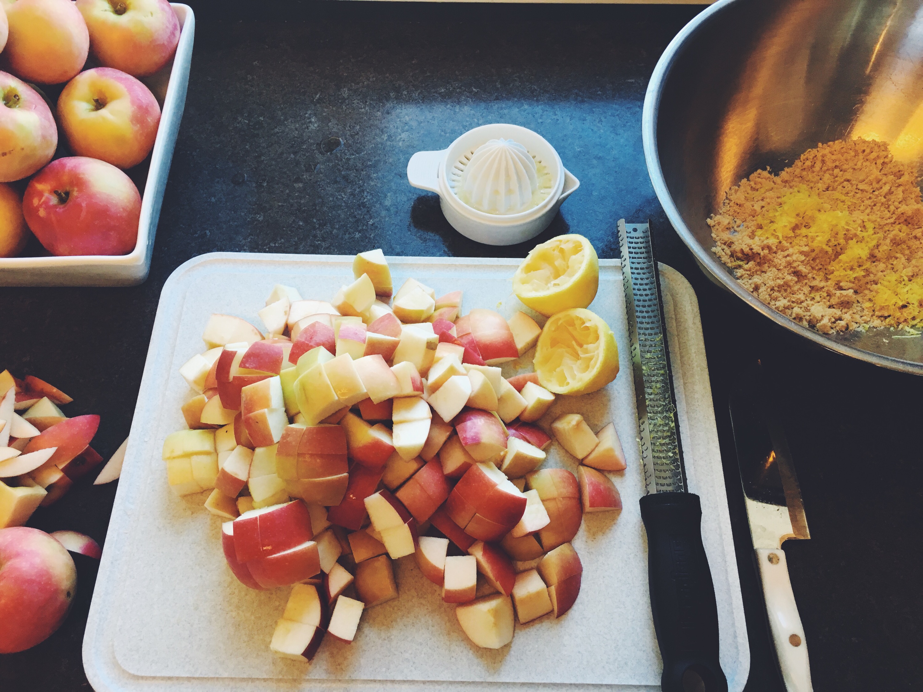 - 15 macintosh apples (washed, cored and cubed – peel on)