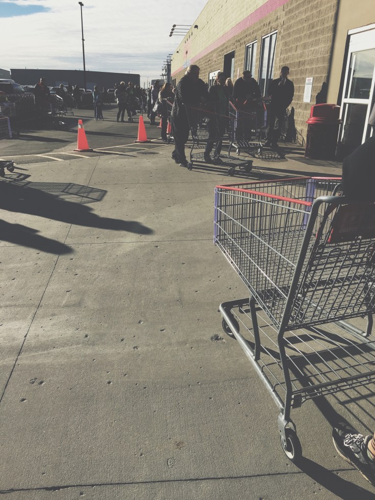 this morning a friend texted me and wanted me to go to Costco with her… I generally never turn down a trip to Costco but I am a tad bit under the weather today and cannot make it…  I took this picture last week when I was there at 9:47 am Thursday morning and the carts where all getting set to make a mad dash when the doors open… it was funny because you’d think we’d all be happy… we all got good parking spots, the weather was nice… but there was this tension in the air… like ‘I’m going to be polite but not too polite…”  and “you better have your membership card ready to go” …