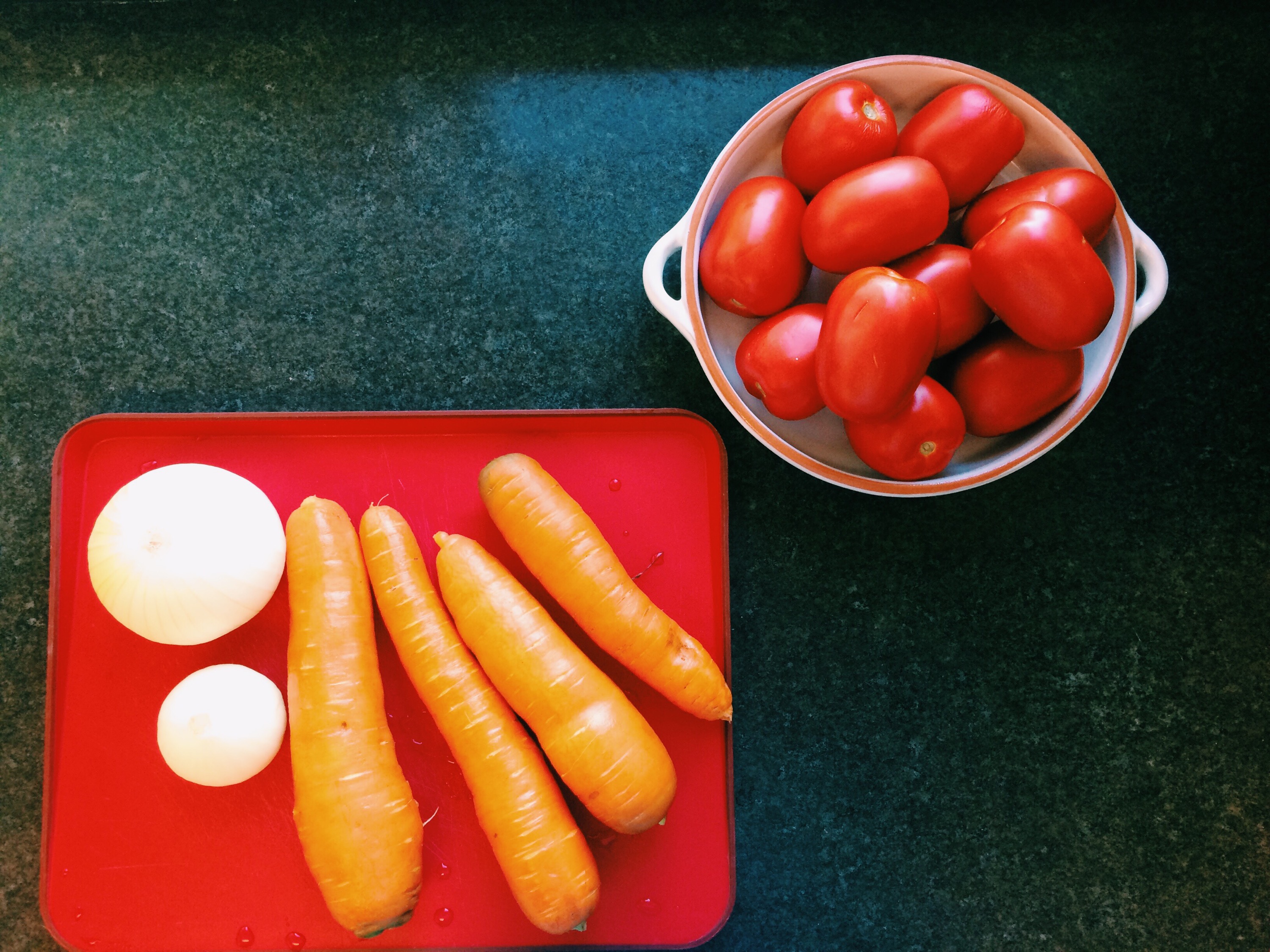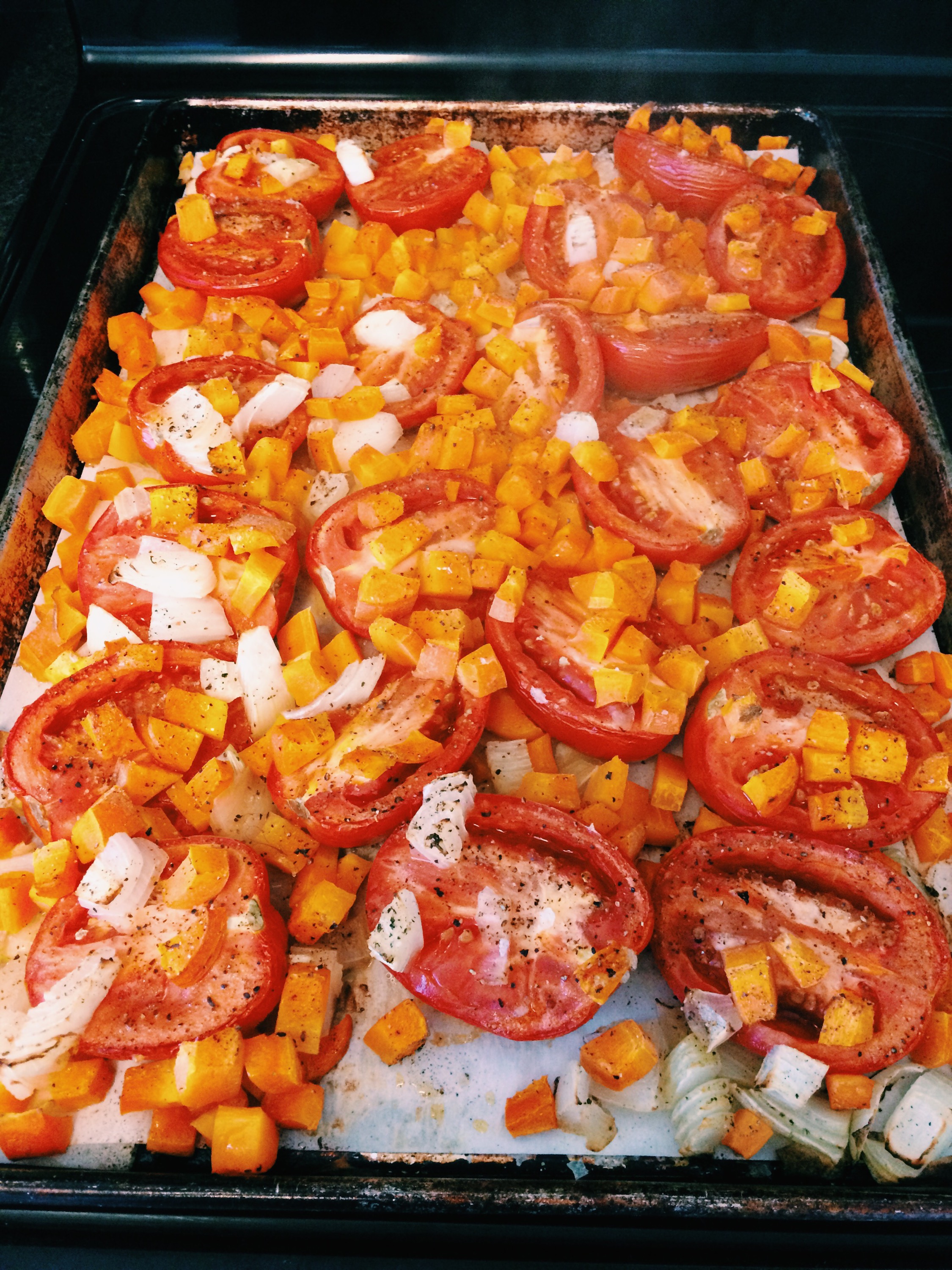 • add carrots and onions and drizzle with olive oil and sprinkle with salt and pepper