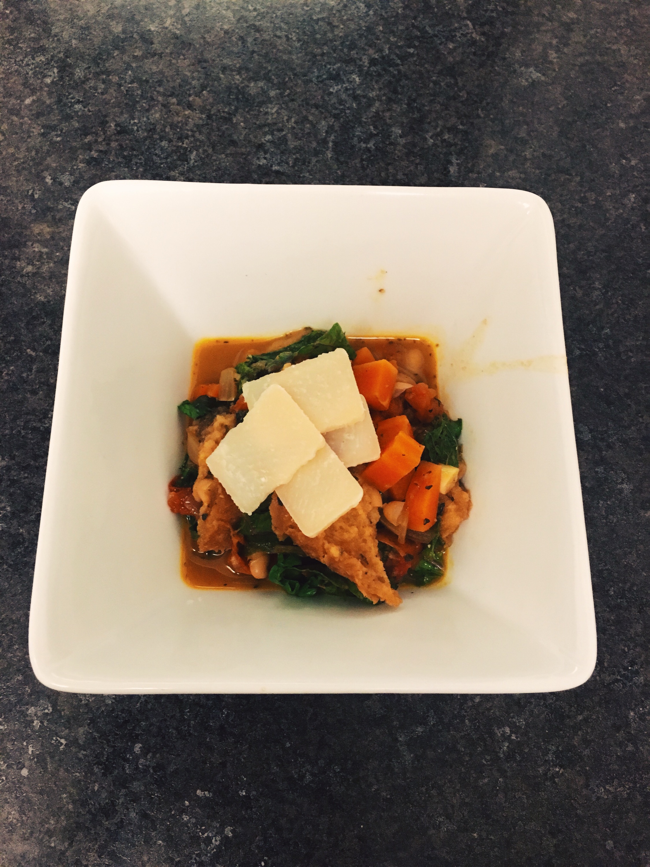 - add 2 gurgles of white wine, beans and broth, cook for 20 minutes or until carrots are soft