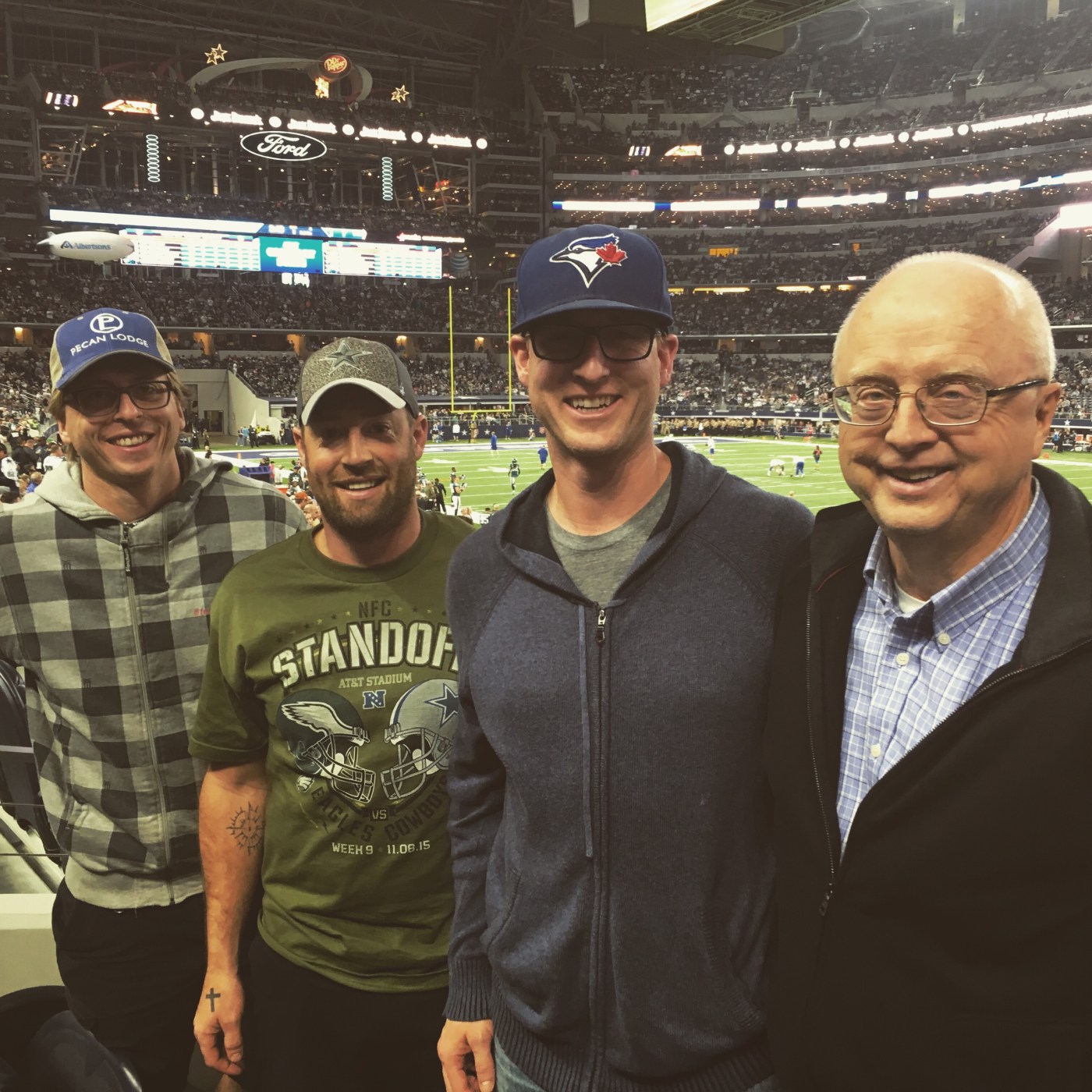 so my brothers and the farmer decided my dad deserved a trip to Dallas for his 65 birthday and retirement… he has always had two NFL franchises close to his heart… Cowboys and Giants… the way he explains liking two teams in the same division is that when he was a kid they only showed Giants or Cowboys games so he ended up liking both teams…