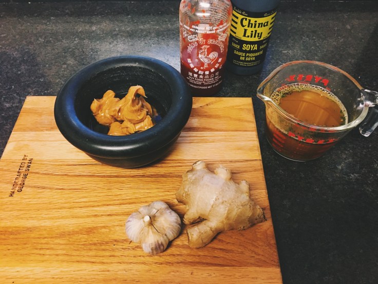 he asked ‘what protein do you want?’ … Ethan said ‘beef’ and Brandon wrote down chicken… what sauce? ‘teriyaki’ and Brandon wrote down peanut sauce… our options were slightly limited…