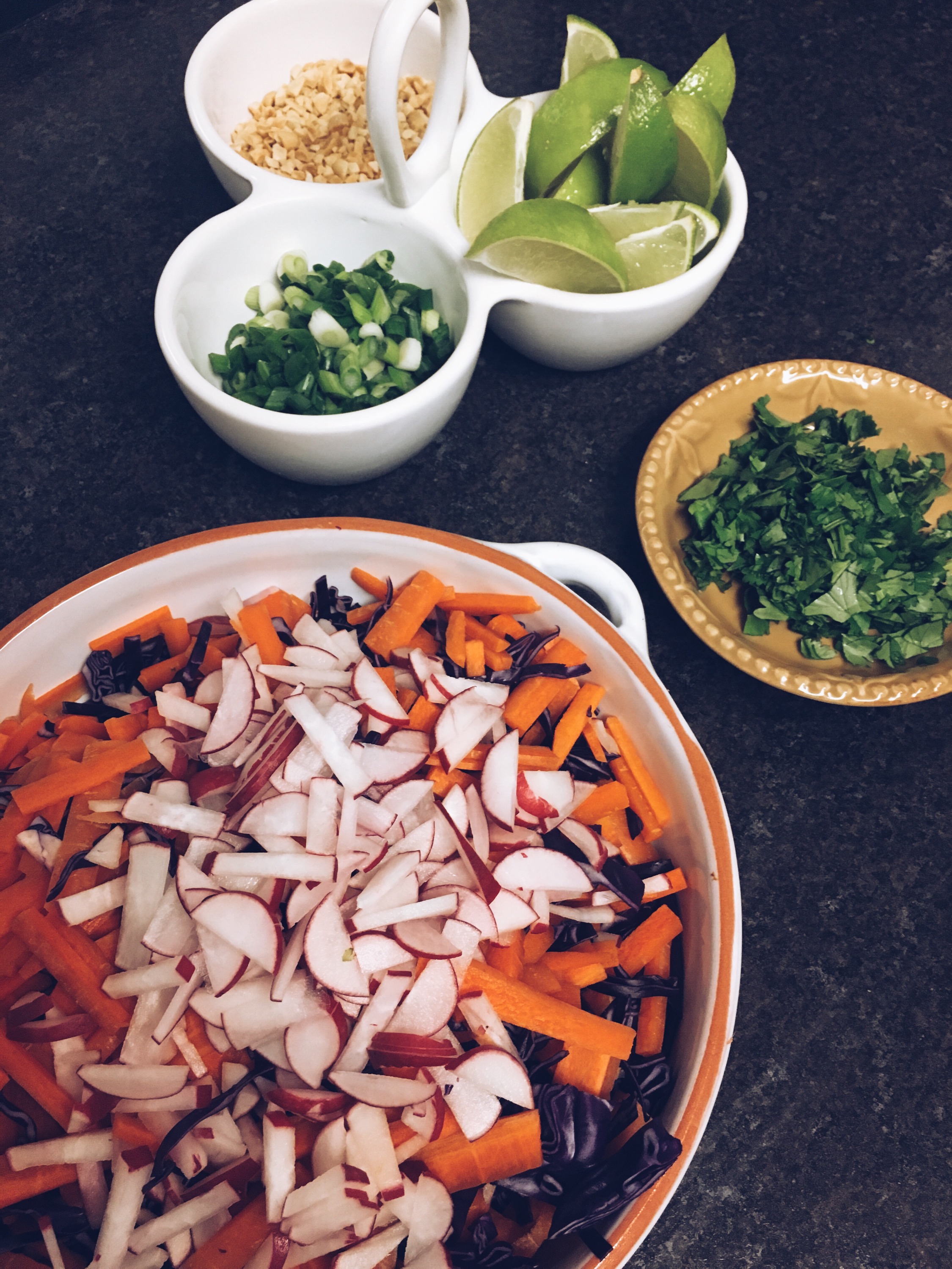 - 400 g rice sticks (or rice noodles), cooked to package directions
