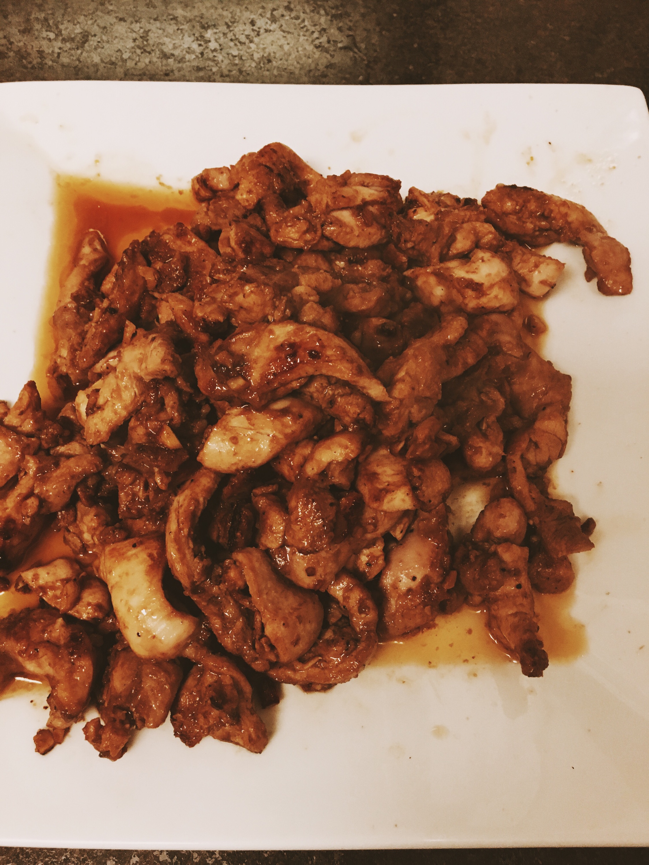 - 1 kg chicken thighs, boneless, skinless, cut into thin strips