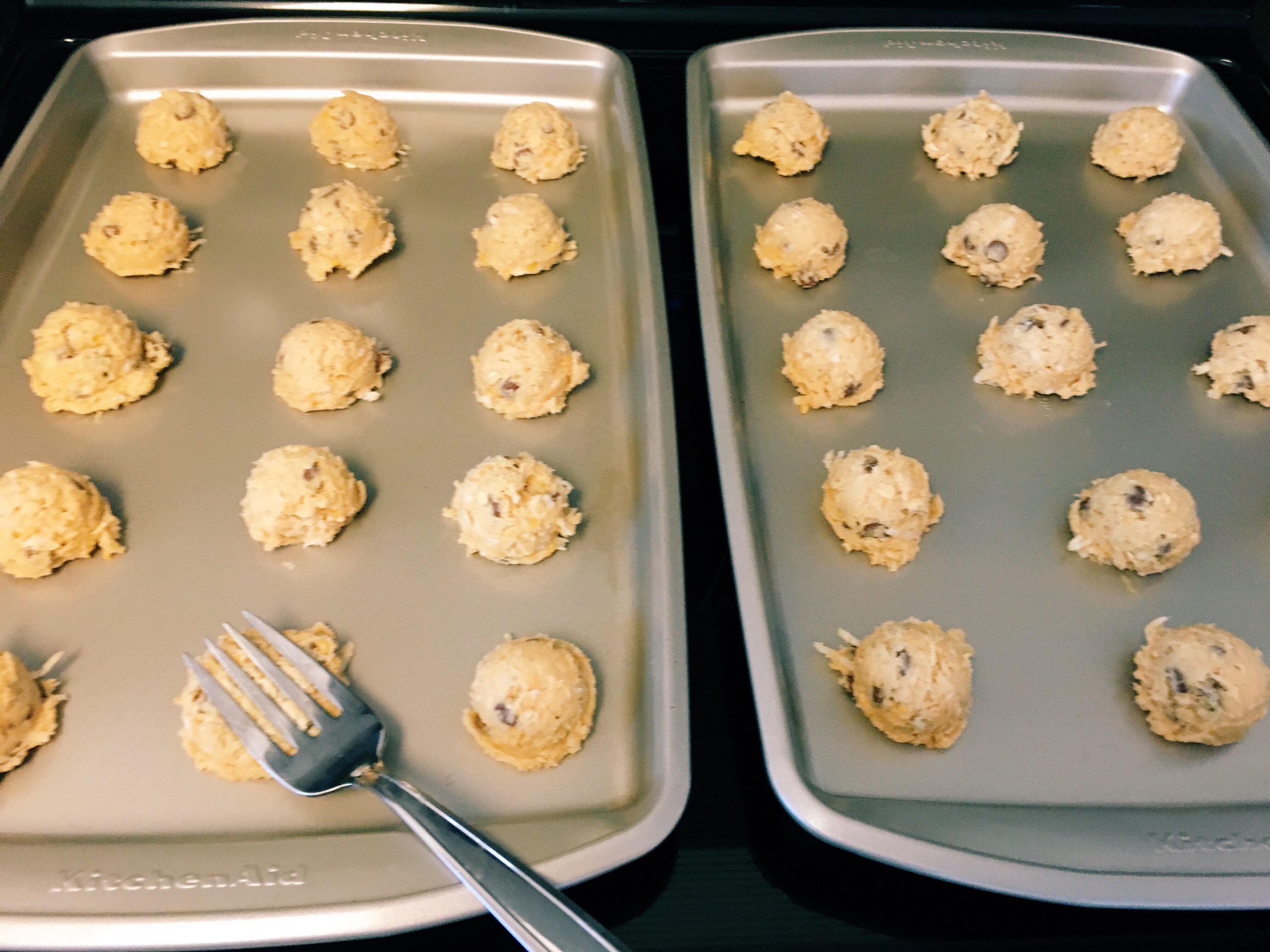 • fold in chocolate chips and coconut
