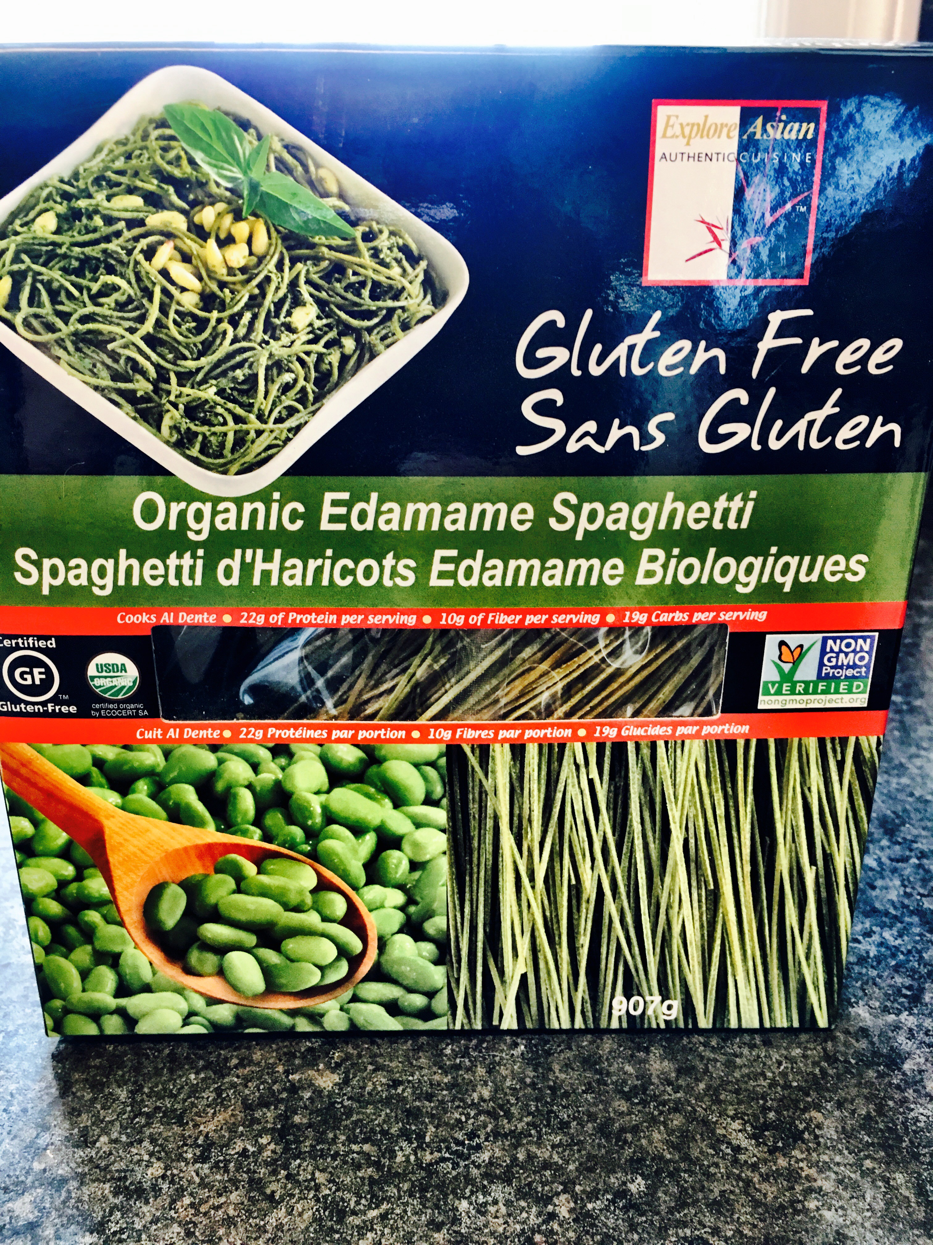 I bought some new noodles from Costco… Edamame Spaghetti… they are organic, gluten-free, non-GMO, vegan, and kosher… they supply you with 10 g of fiber, 22 g of protein and vitamin C and iron…