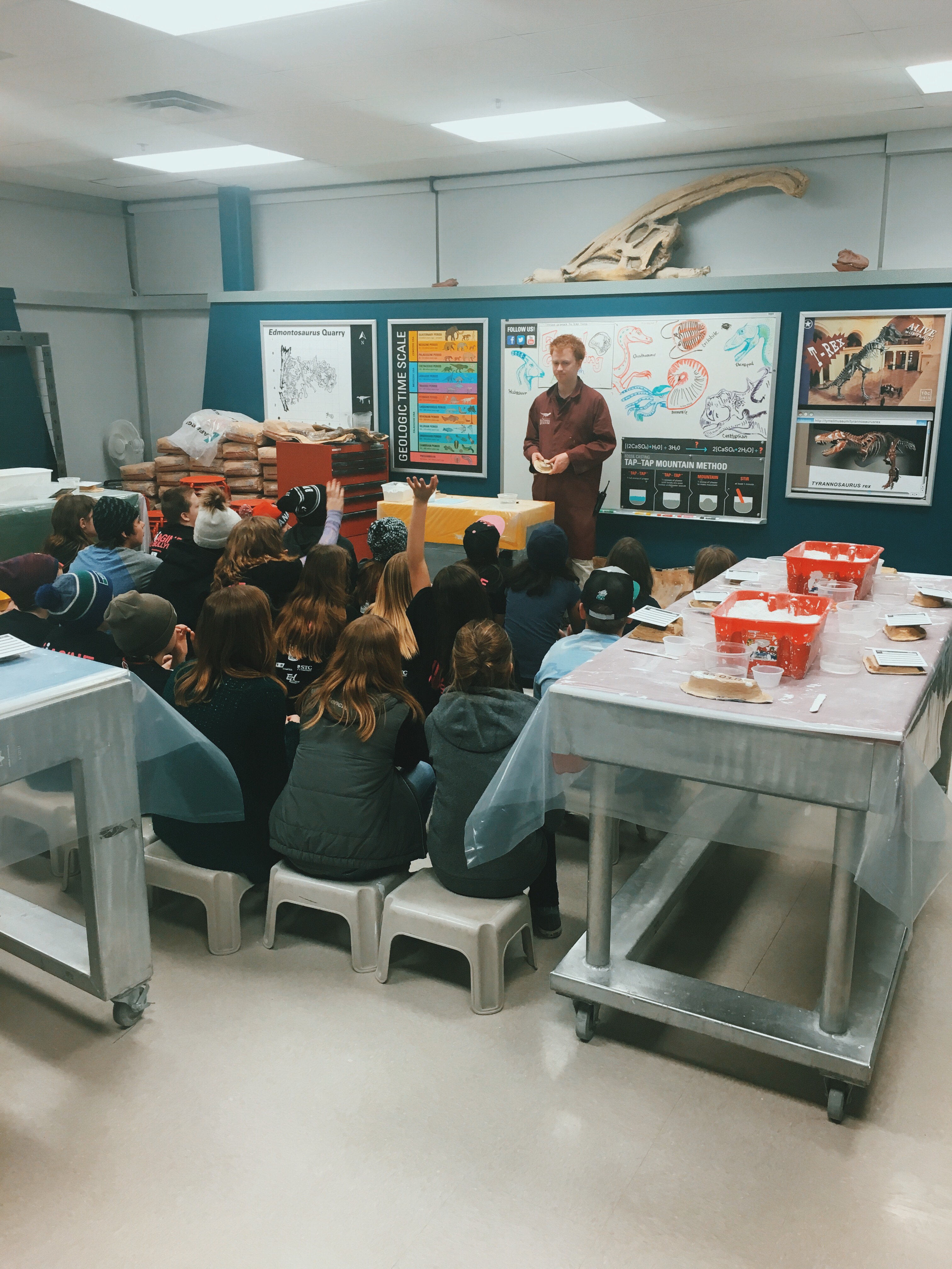 The kids had a one hour lesson on the history of the Badlands, then a snack, then a one hour workshop on solving a dinosaur crime scene, then toured the museum for an hour, then supper, then another hour of measuring dinosaur bones and then a final hour in class of learning about fossils and casting them.