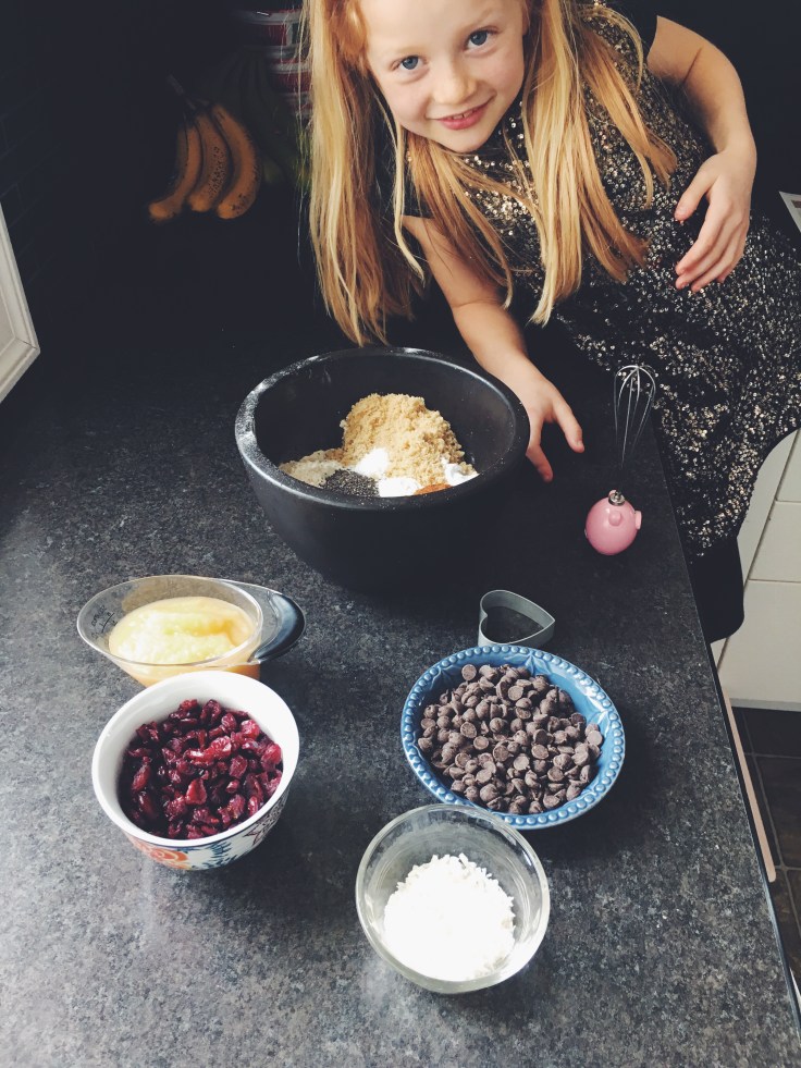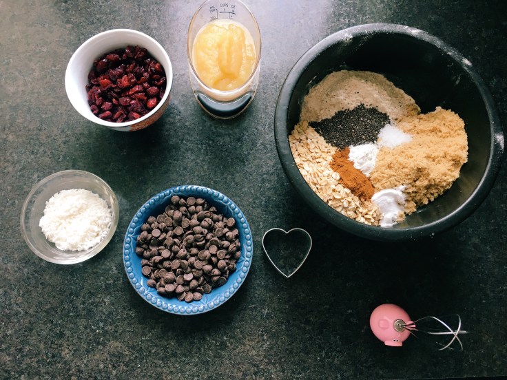 - stir in applesauce and coconut oil until dough is evenly mixed