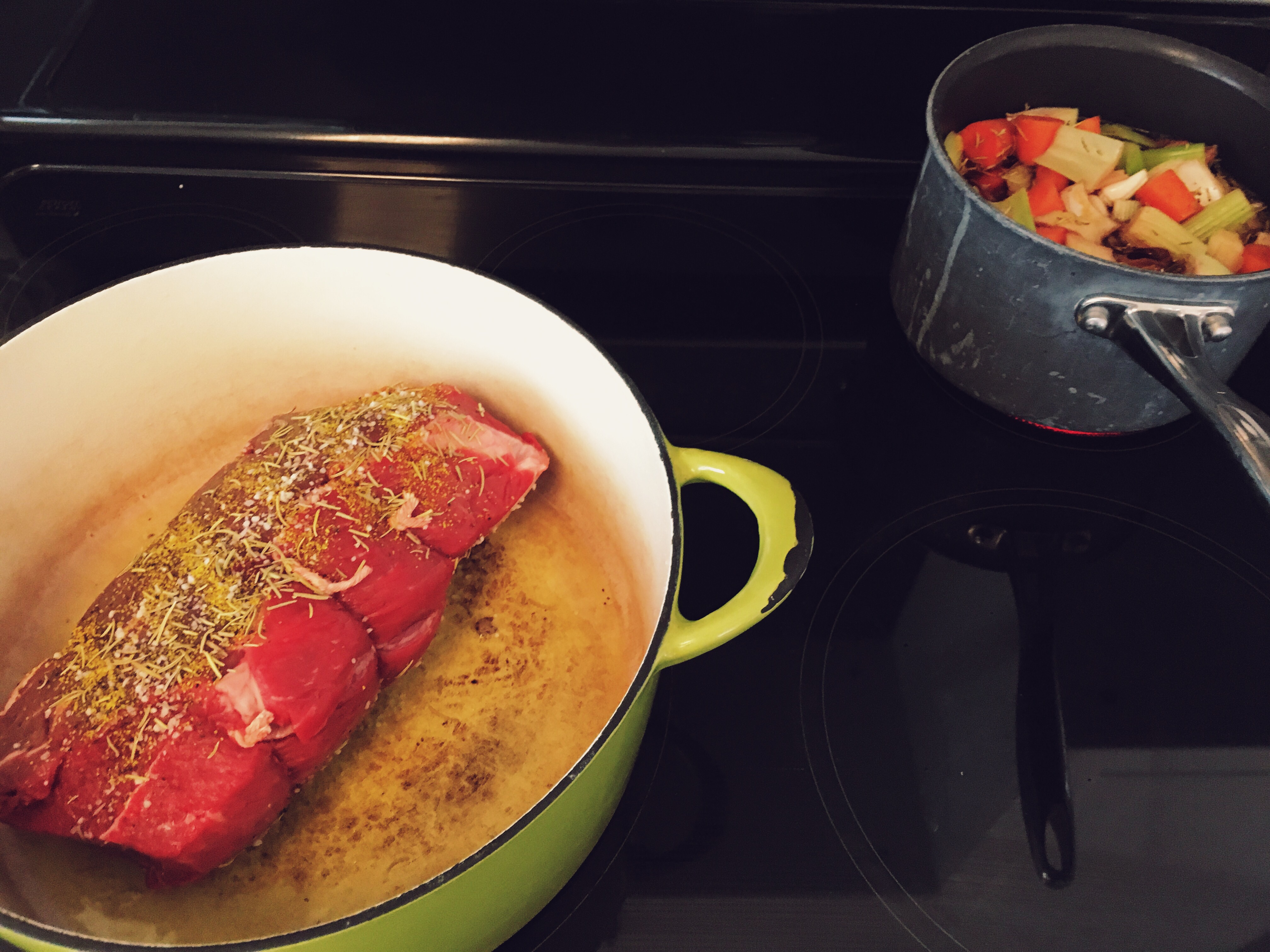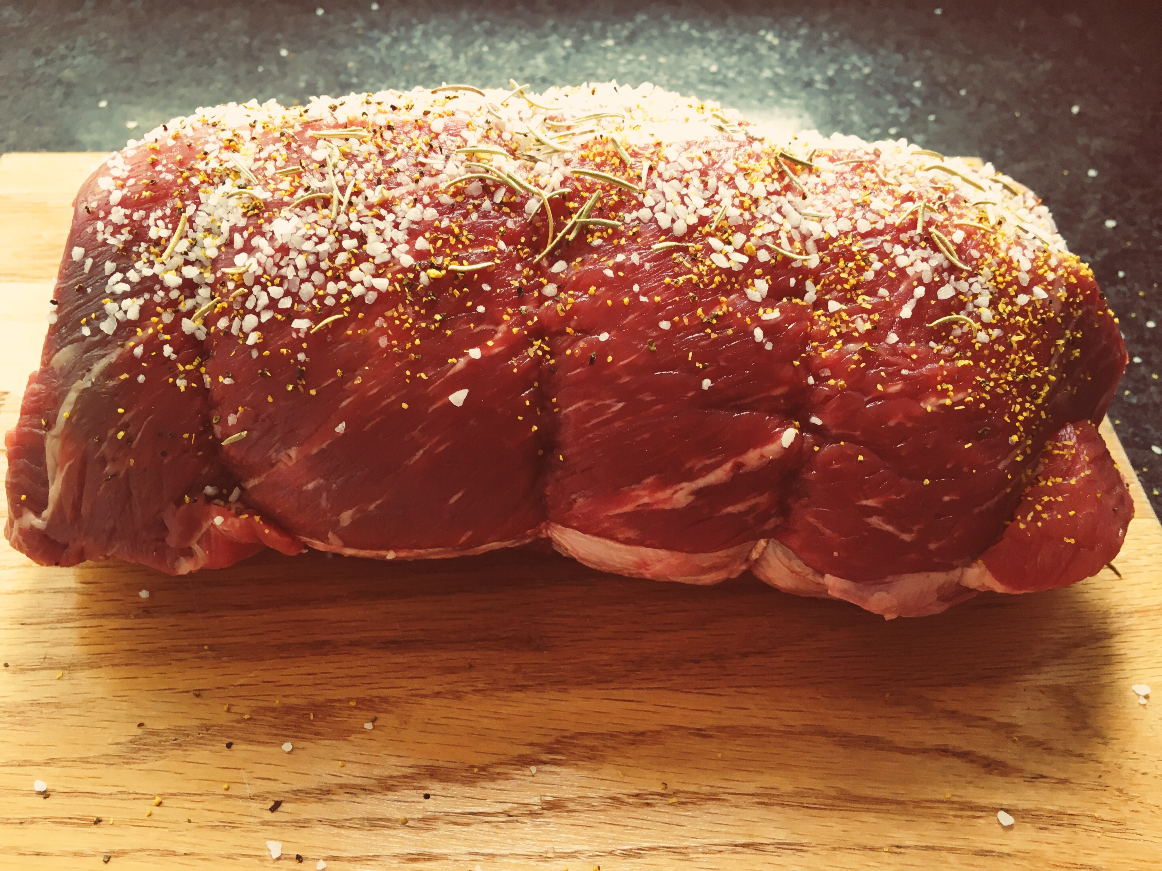 - pat dry the roast and then season with salt, pepper and rosemary