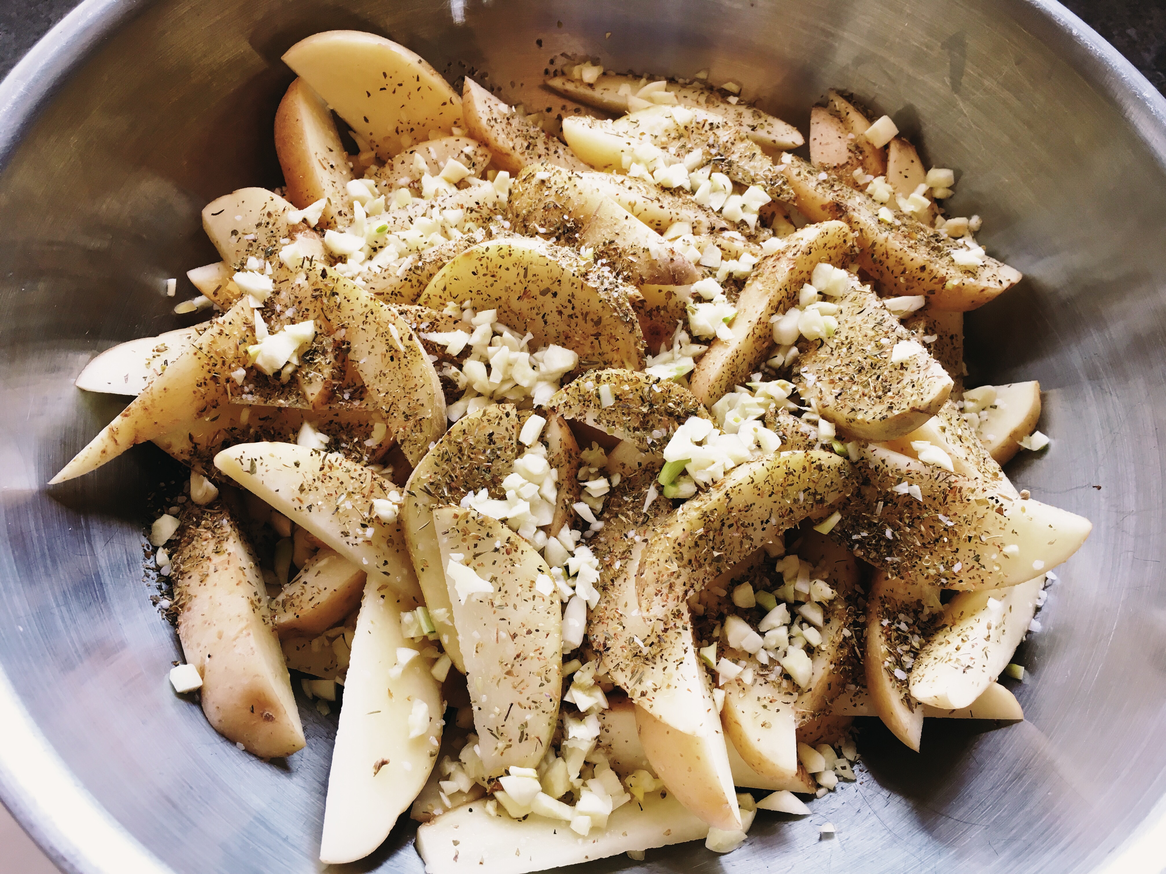 - in a large bowl, add cut potatoes