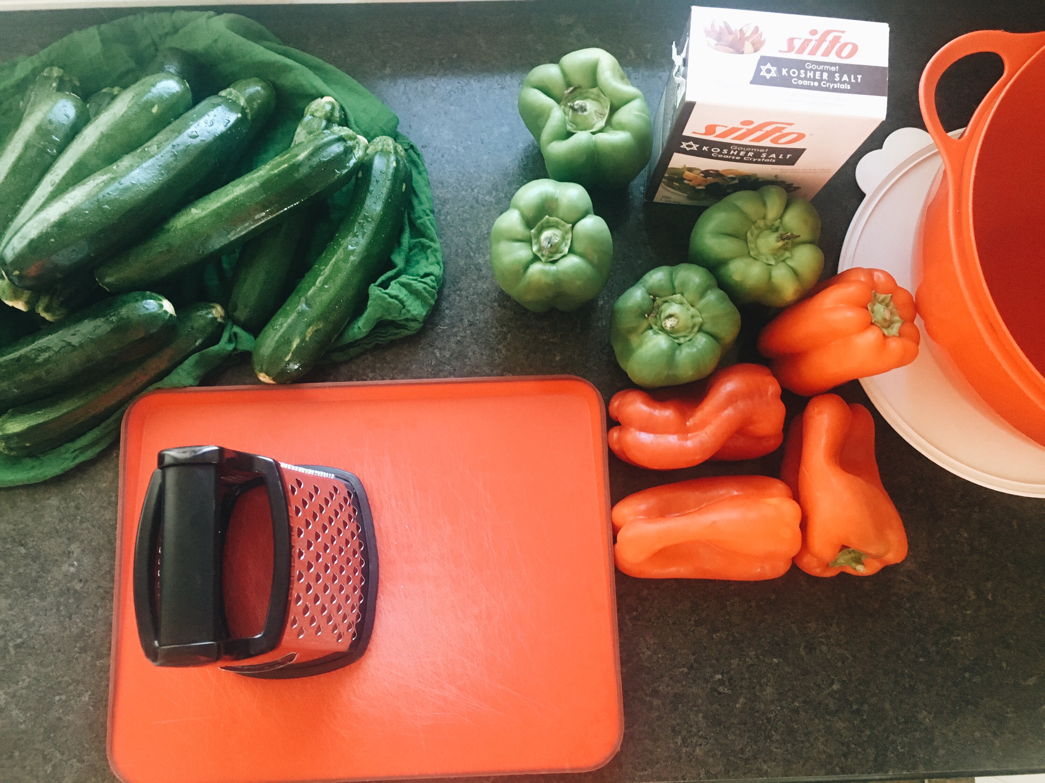 this time of year I have to buy zucchini at the grocery store… but if you are smart and plan ahead you have made this in the fall with the over-abundance from your zucchini harvest and are all set to go…