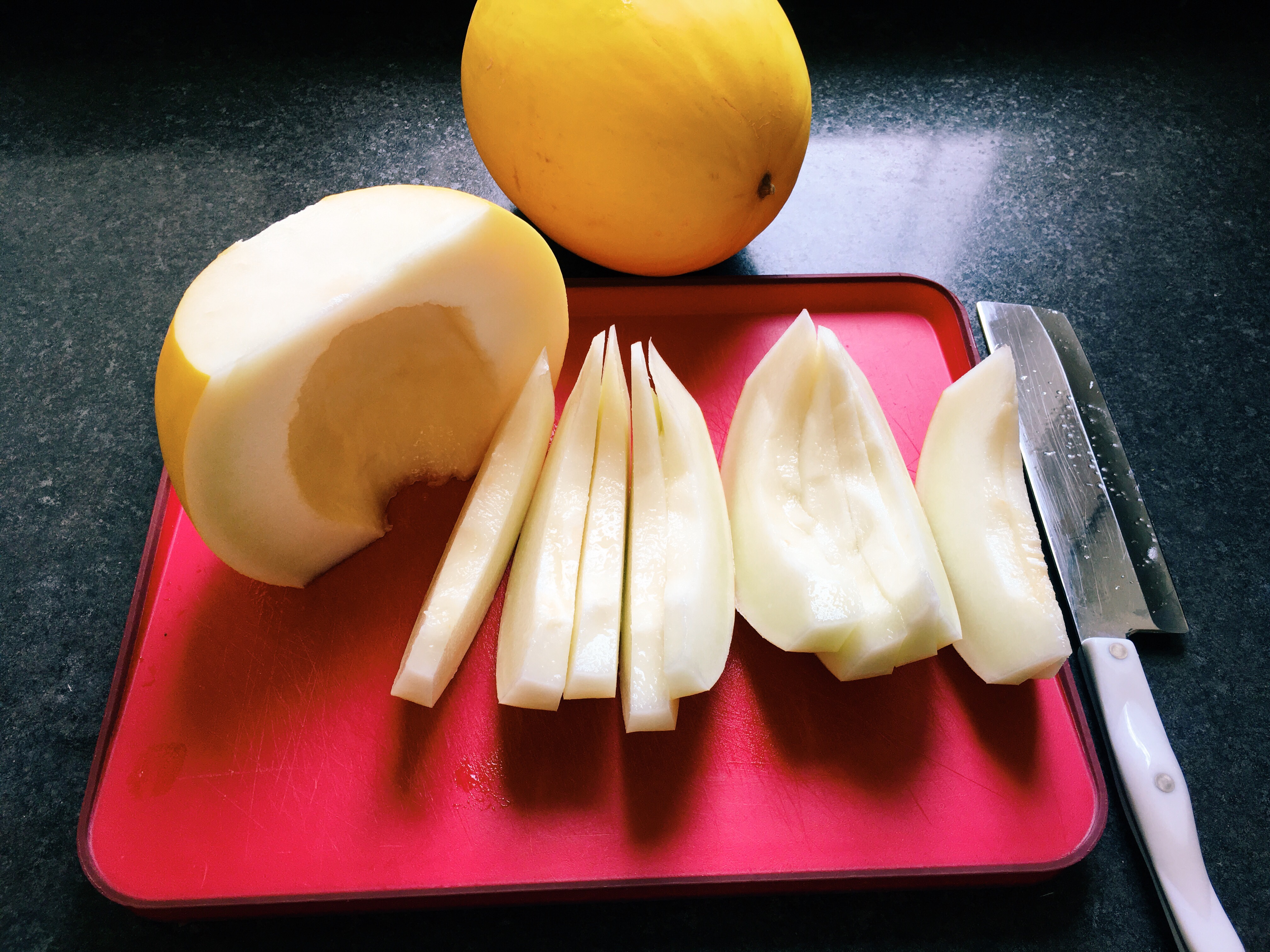 so the meal to the field, when you get home at 2 pm, is melon for the salad… roasted broccoli with garlic and lemon, twice baked potatoes, chicken cordon bleu (which I had in the freezer) and chocolate chip zucchini brownies…
