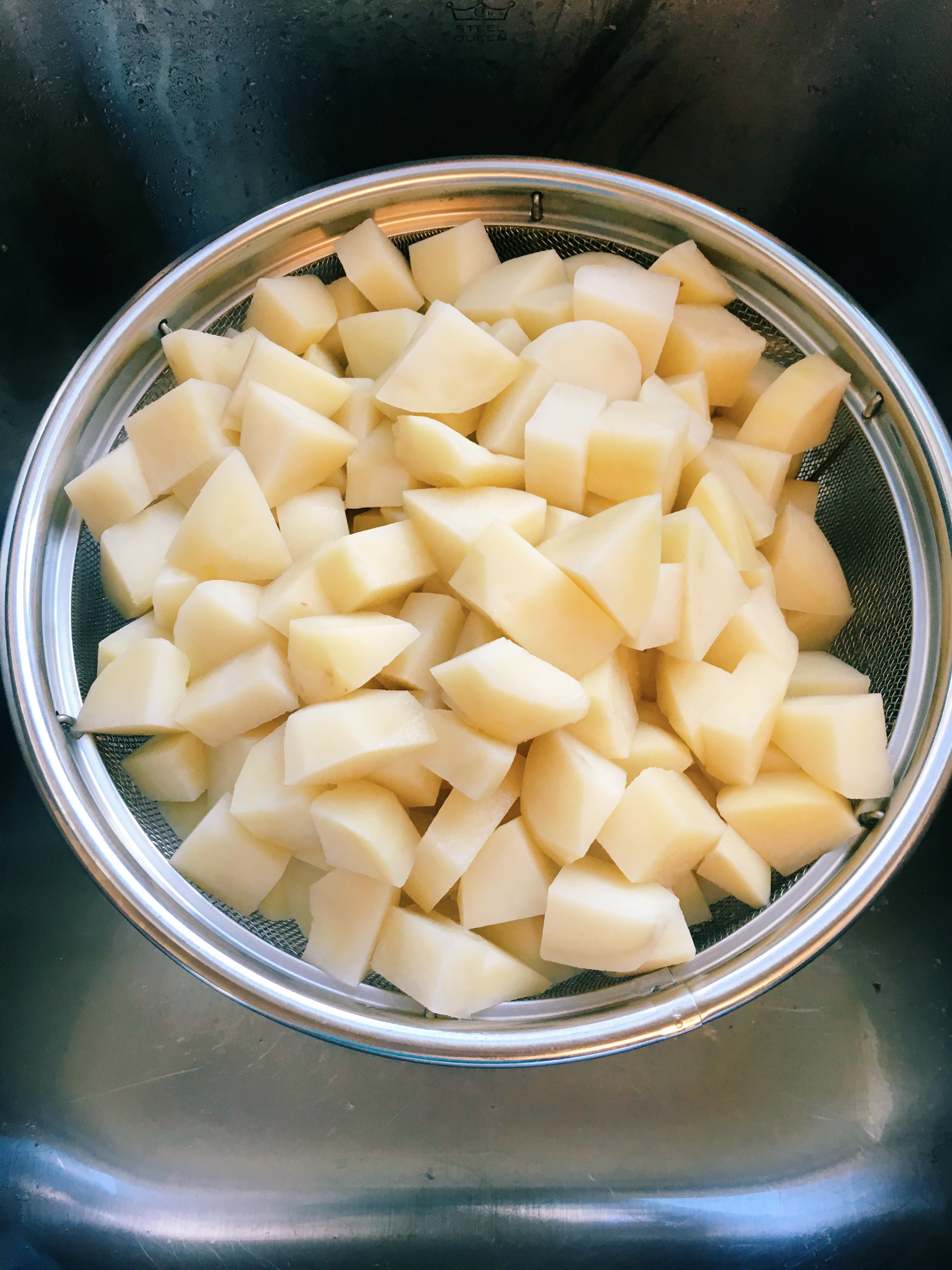 - boil peeled, cubed potatoes for 10-15 minutes