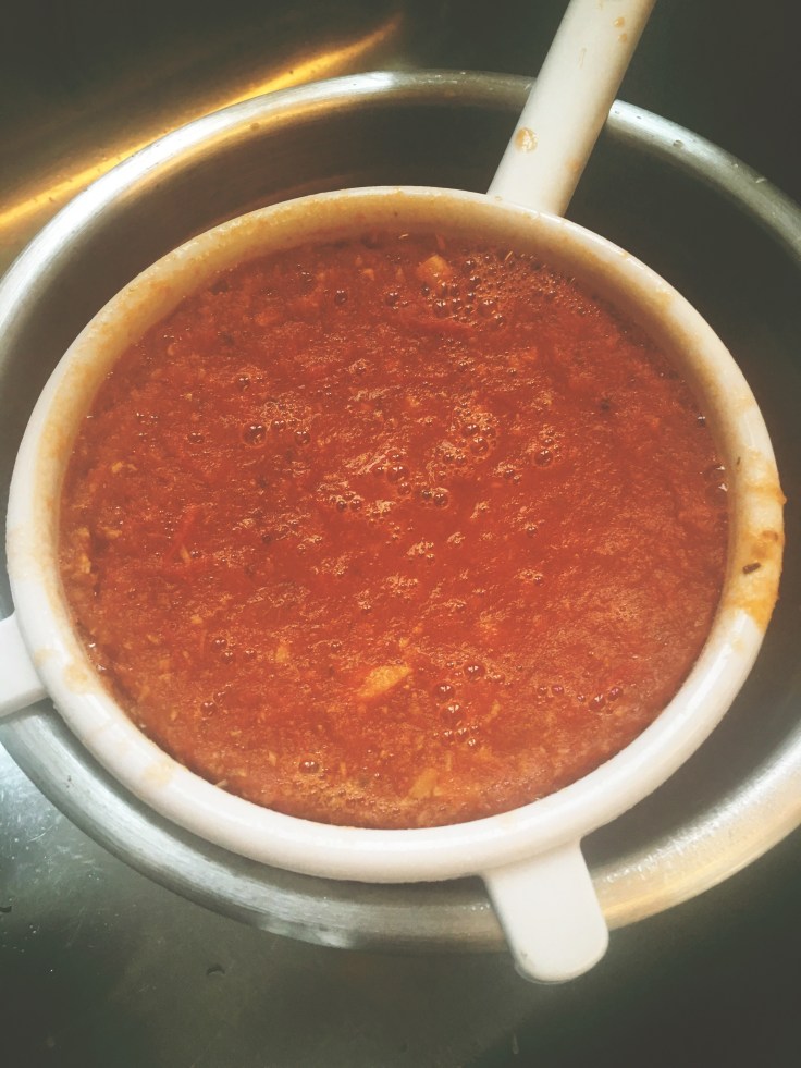 - strain if you would like no pulp in your soup and return to pot