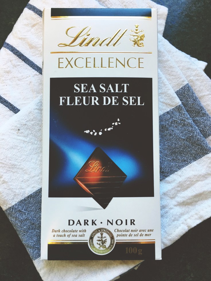 in my mind the best recipes involve fantastic ingredients…  the Lindt dark chocolate with sea salt bar is hands down the best chocolate bar out there…