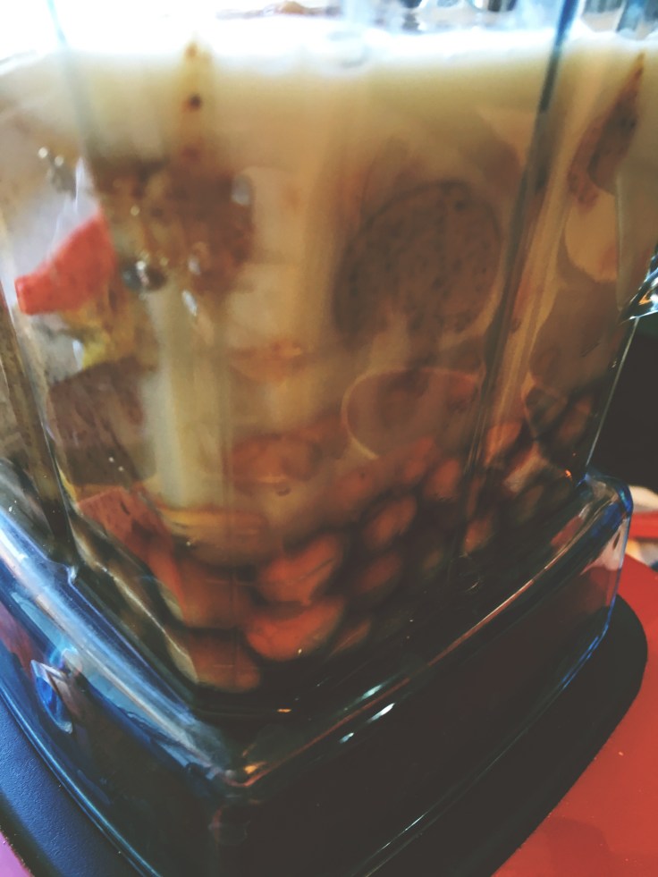 this was the epiphany I had… putting the chickpeas, maple syrup, almond milk, almond butter and vanilla in the Vitamix...  the consistency it beats it up into is perfection…