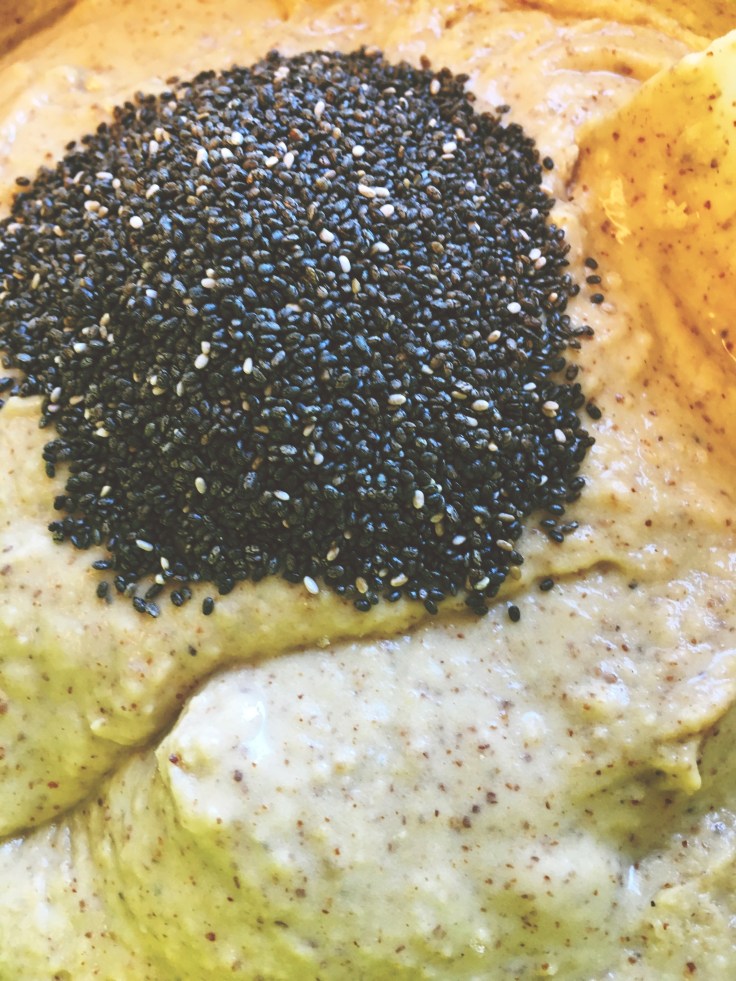 transfer the wet mixture to a bowl and fold in the brown rice flour, baking powder and chia seeds to bind it…
