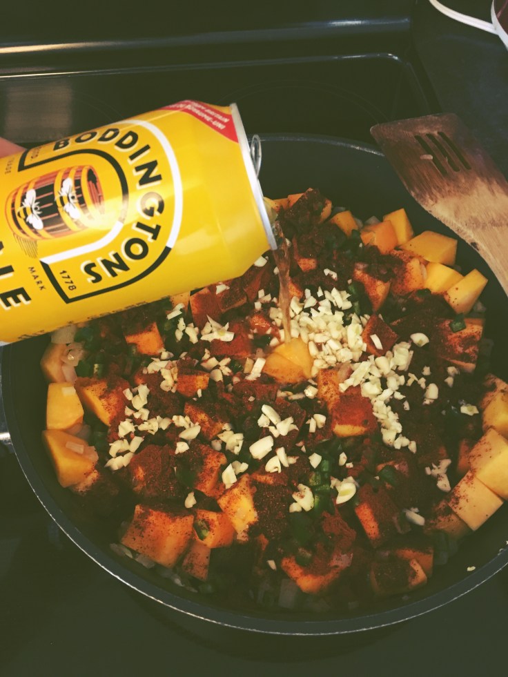 next on the cooking list for the day was burritos… I had the brilliant idea to use butternut squash instead of meat… you can feel free to omit that step!