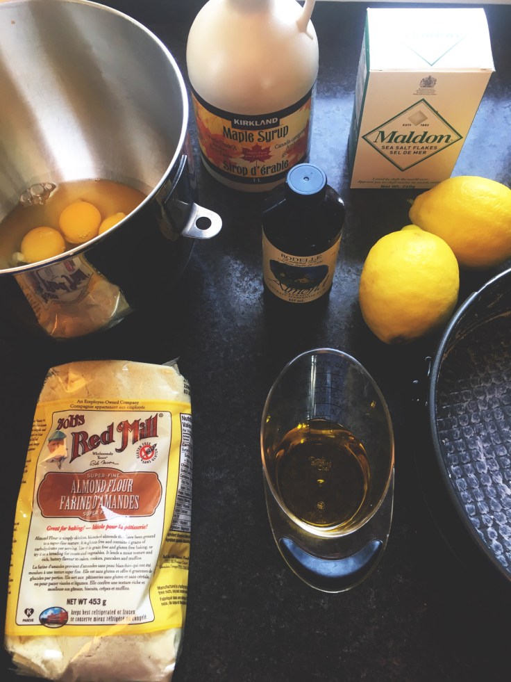 - in a mixing bowl, mix eggs, maple syrup, oil, almond extract, lemon zest and salt