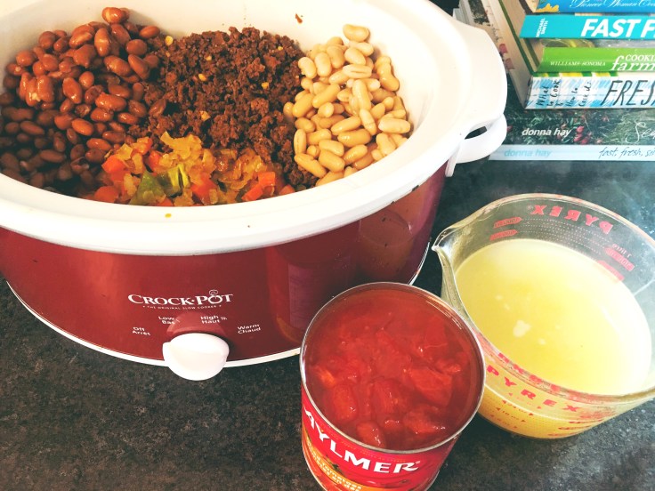 this morning I got the kids breakfast and lunches done and began meal prep… potatoes boiled and crockpot chili made…