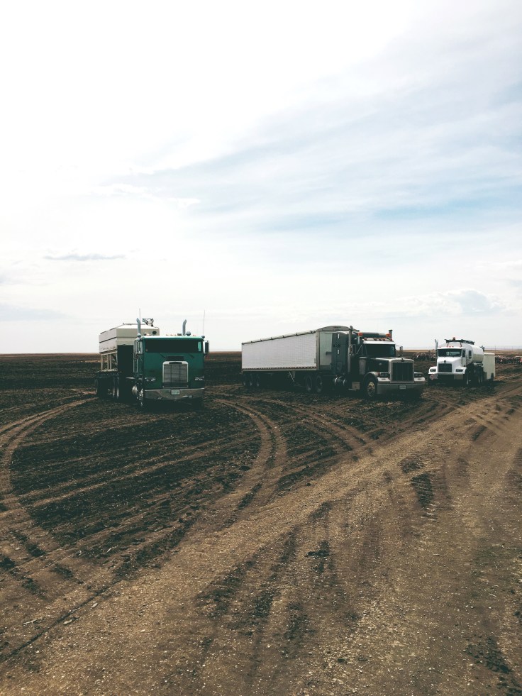 after the meal prep and then an hour of bookwork I paid my first visit out to the seeders… this is a common sight this time of year… the seed trucks and fuel truck…