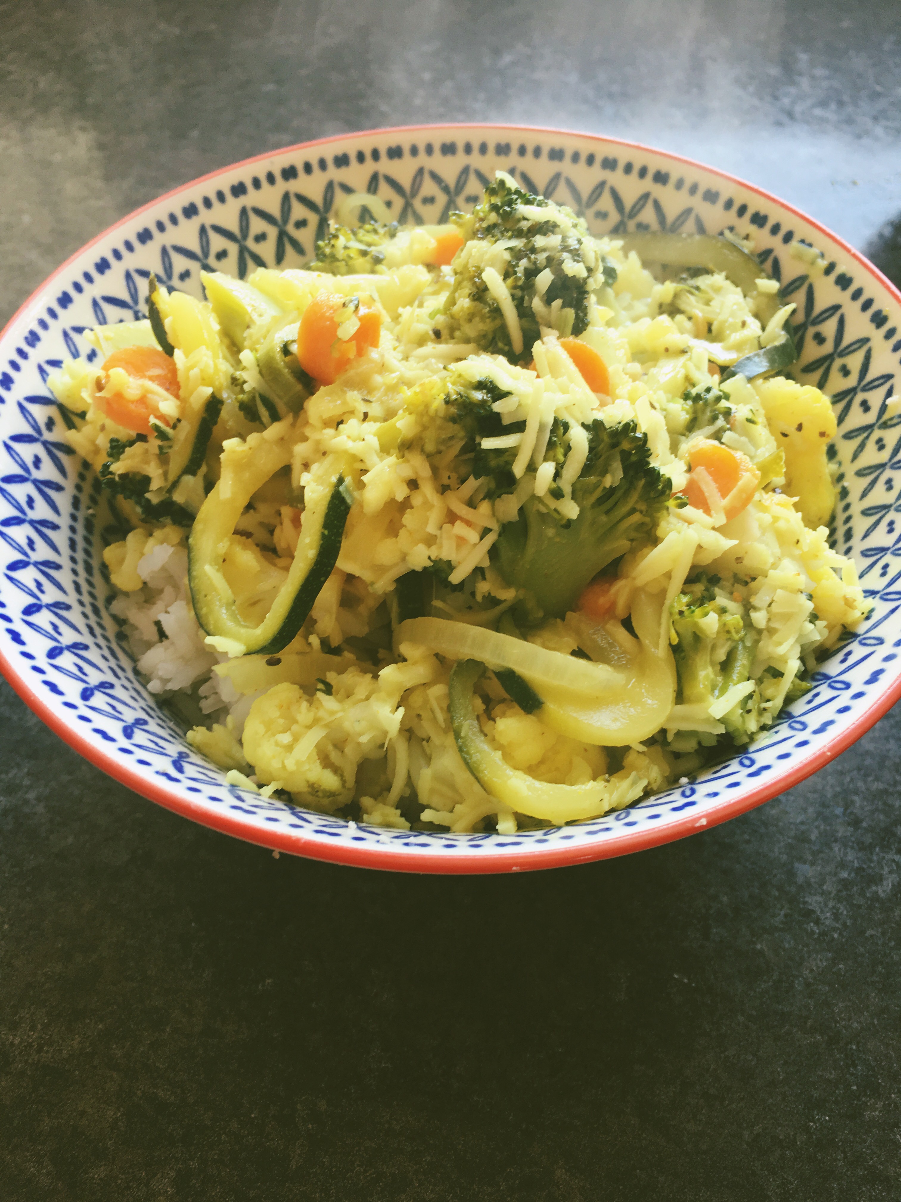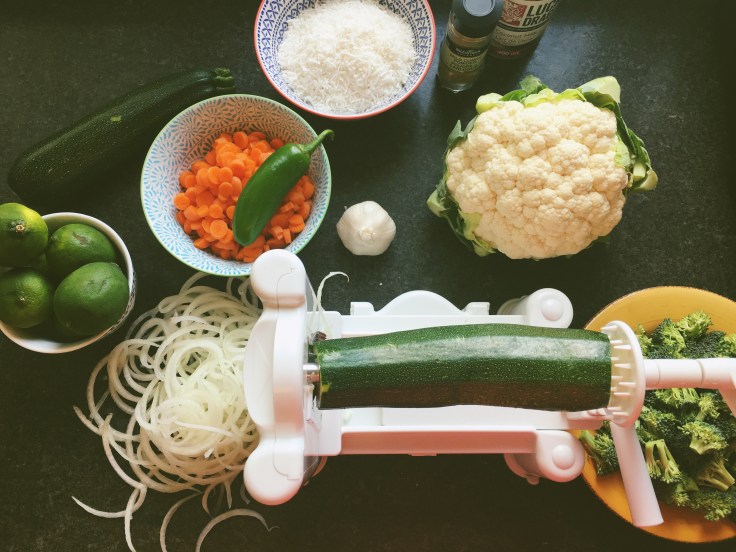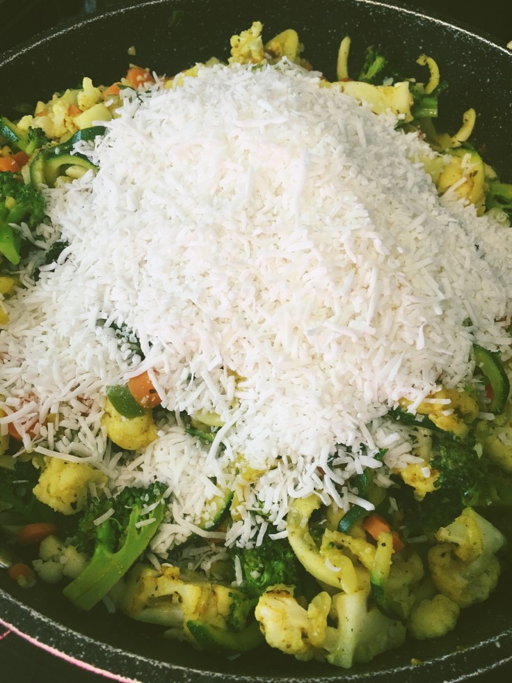 • one at a time, add carrots, broccoli, cauliflower and zucchini