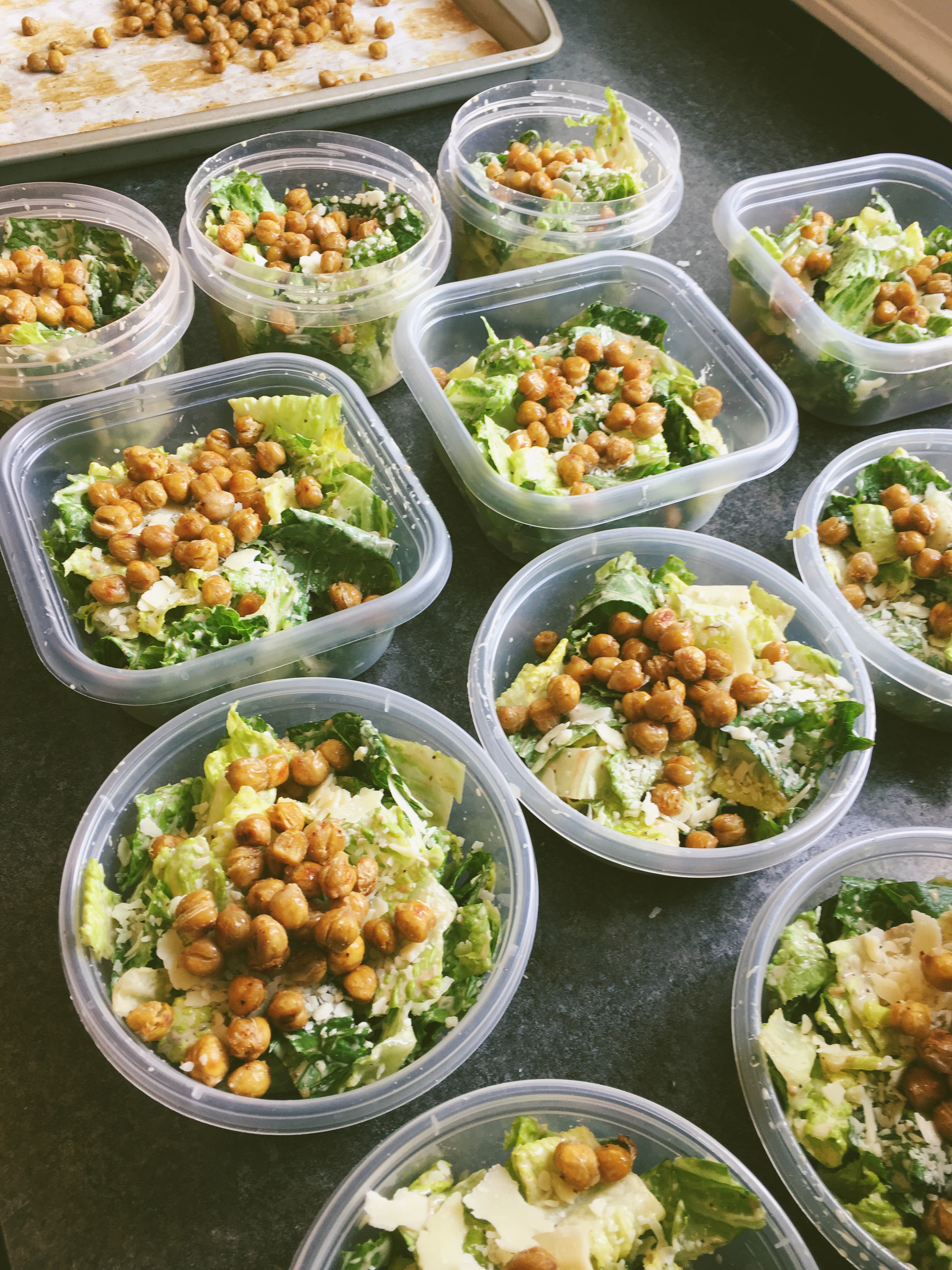 also, the health benefits of a caesar salad are not exactly high… so I thought, what if, instead of croutons you put chickpeas on it???
