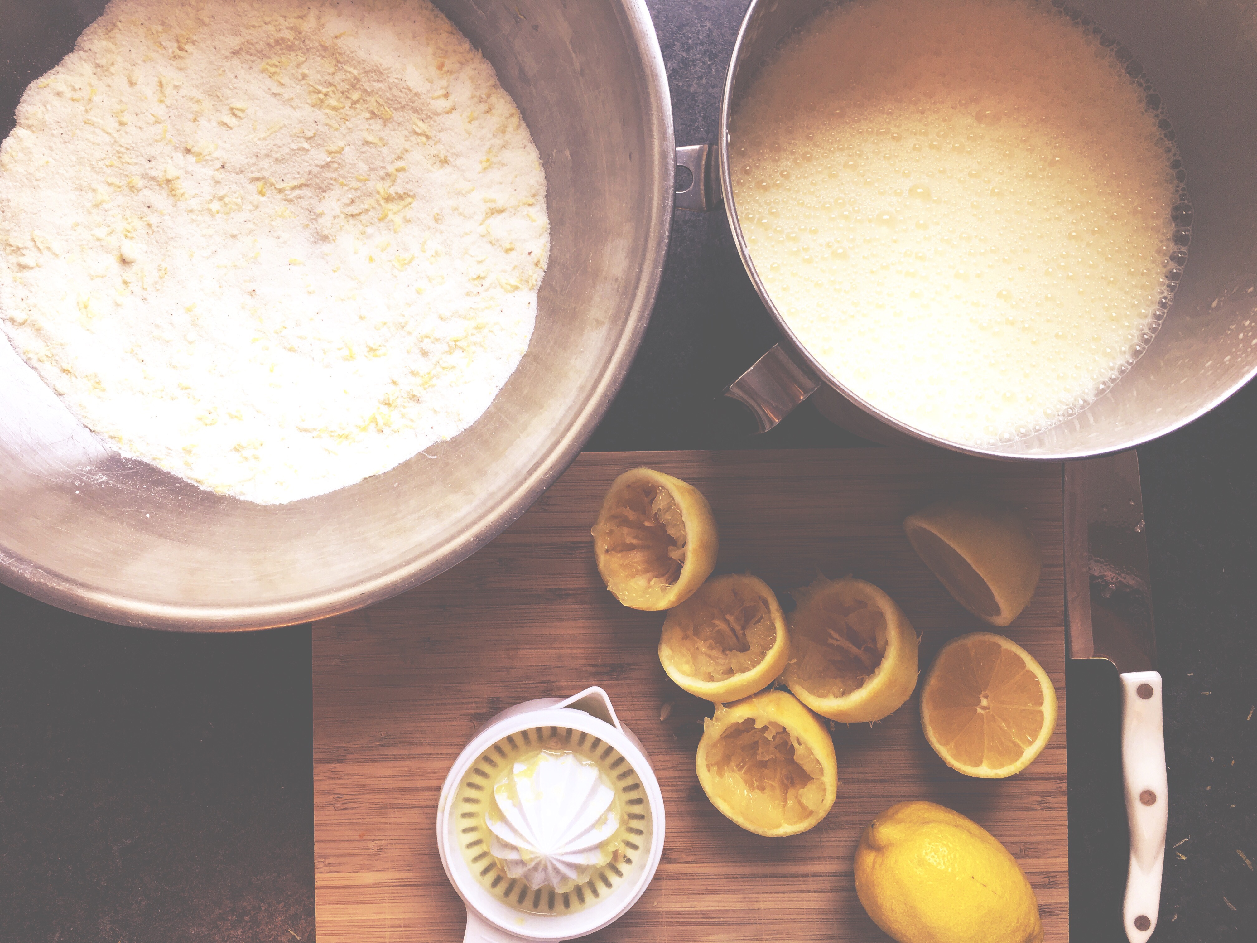 inspired by lemon meringue pie (which I have made and taken to the farmers but due to it’s delicate nature tends to end up being lemon meringue pudding by the time the farmers eat it)… this lemon buttermilk pie holds up better on it’s journey to the farmers…