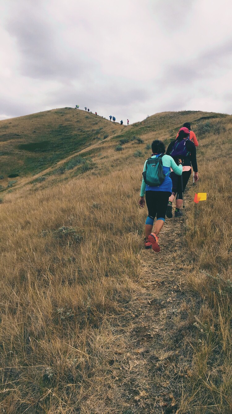 the second hint was that I had not ran in a month… I hurt my knee running a marathon in Edmonton a month ago (in my trail shoes because I stupidly thought I should break them in for this trail run I was training for) and was in a shocking amount of pain… took some time off and then did some yoga and pilates but no running…