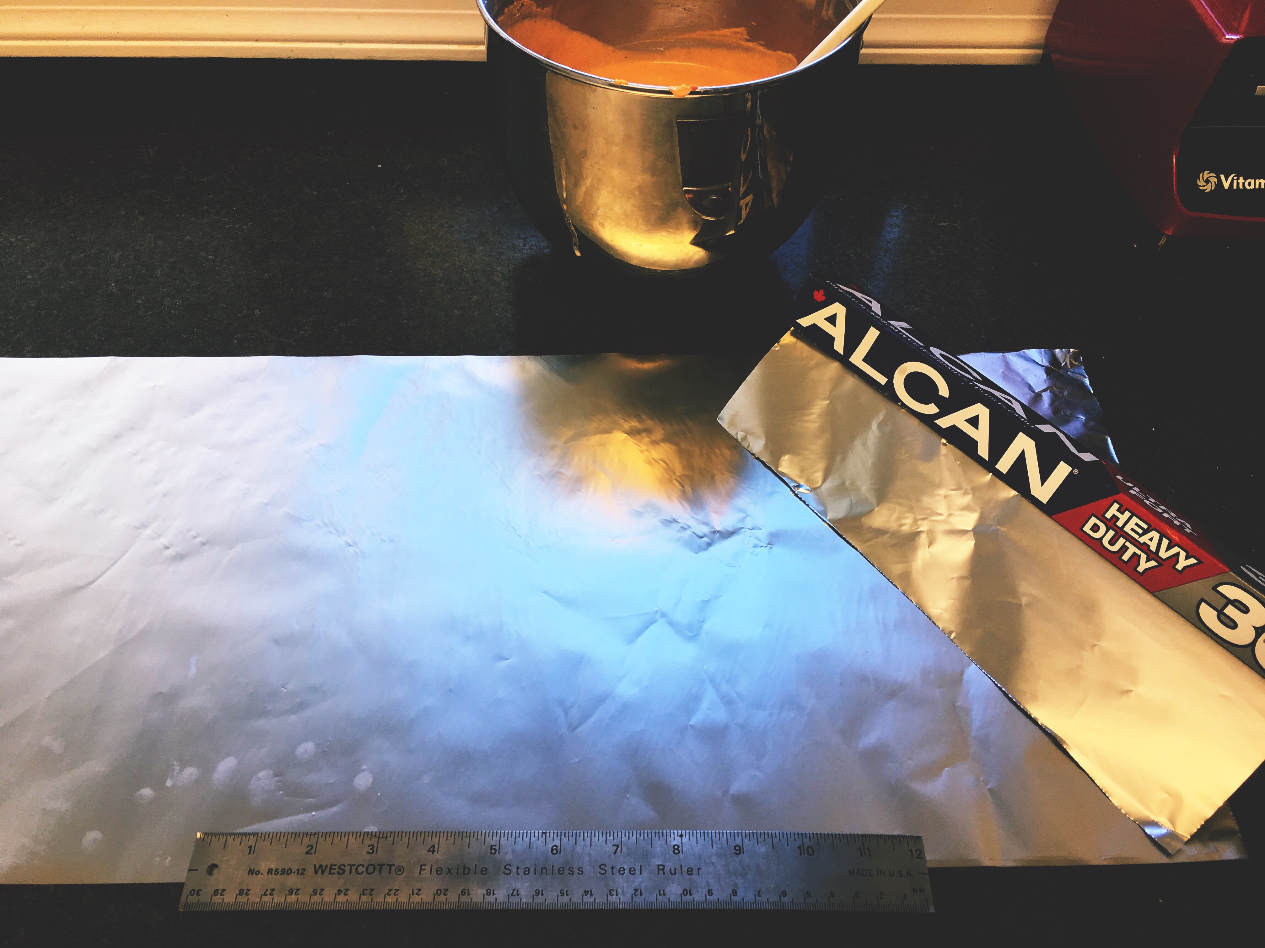- measure 28” with aluminum foil and fold three times to make a ‘hammock’ to scoop pan out with