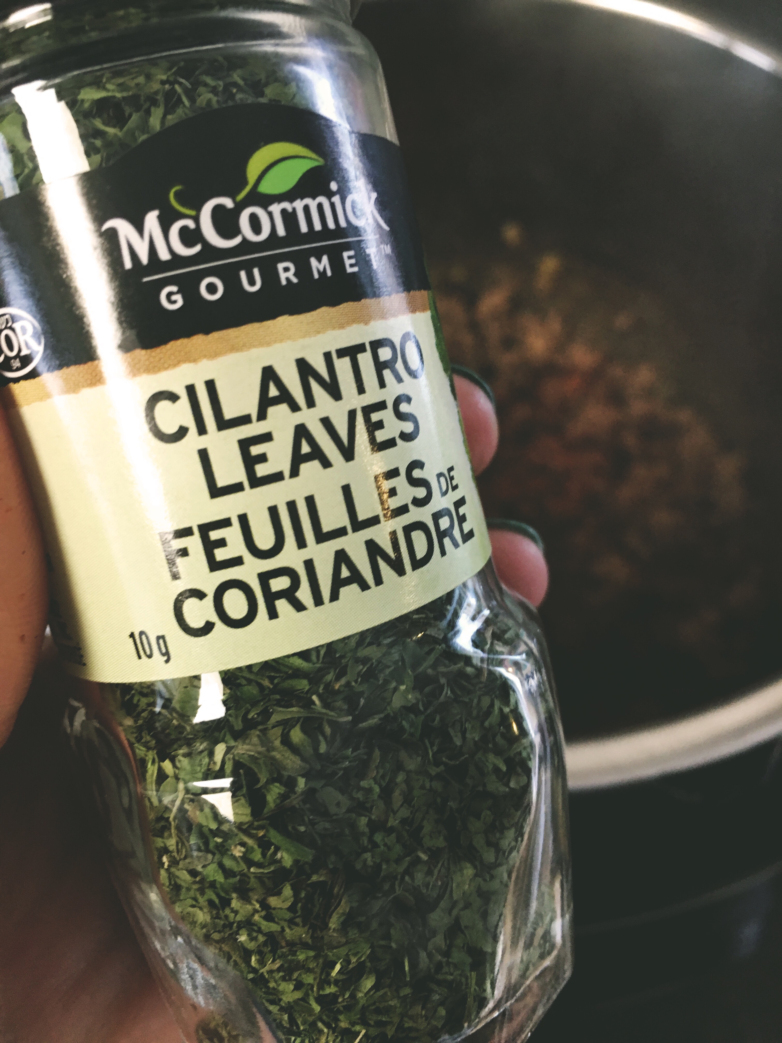fancier moms might chop up real cilantro… but when you are putting it in a dish like this I think you are wasting your time… dried cilantro is just fine and it’s not going rotten in your refrigerator because you forgot you had it…