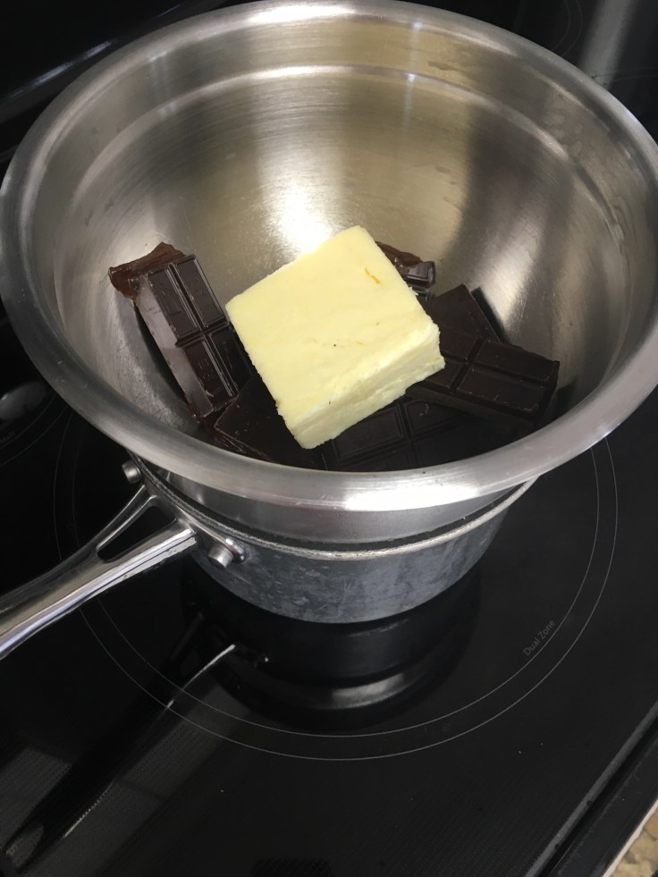 I believe this method of melting chocolate and butter is called a ‘double boiler’… if only there was some way I could check that to see if that is accurate… some way to type a word in and find out it’s meaning… but alas I shall just have to guess…