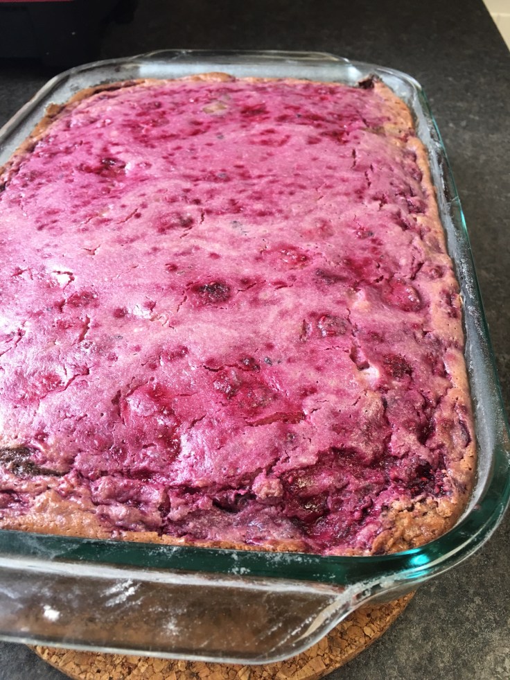 meanwhile… dessert time… these raspberry cream cheese brownies are delicious… and I had raspberries in the freezer still from last summer which worked out great for this dessert…