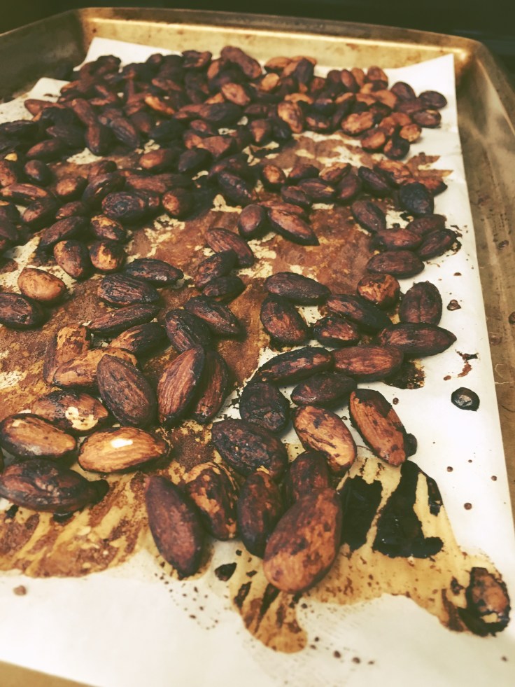 - for the almonds, roast them at 325 degrees for 10-12 minutes with some soy sauce