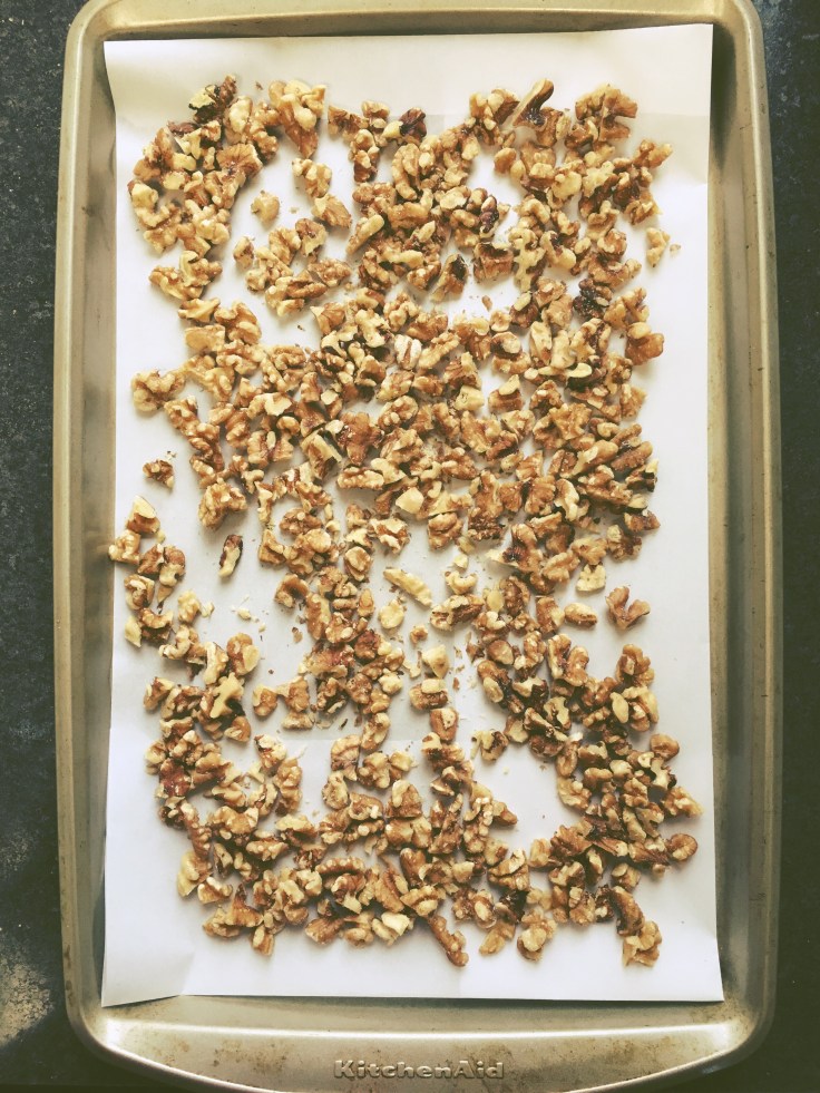 to make the roasted walnuts, head oven to 300 degrees