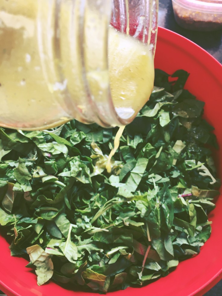 I used the bag of kale mixture from Costco for this salad and topped it with a delicious lemon juice vineagrete