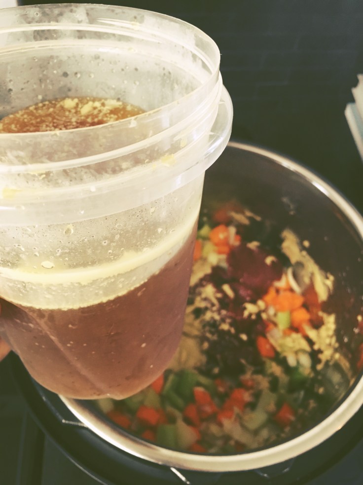 because the beef was frozen I set the timer for 80 minutes… if it wasn’t frozen I would have gone with 60 minutes… I set the beef aside to slice and strained the mushroom mixture…