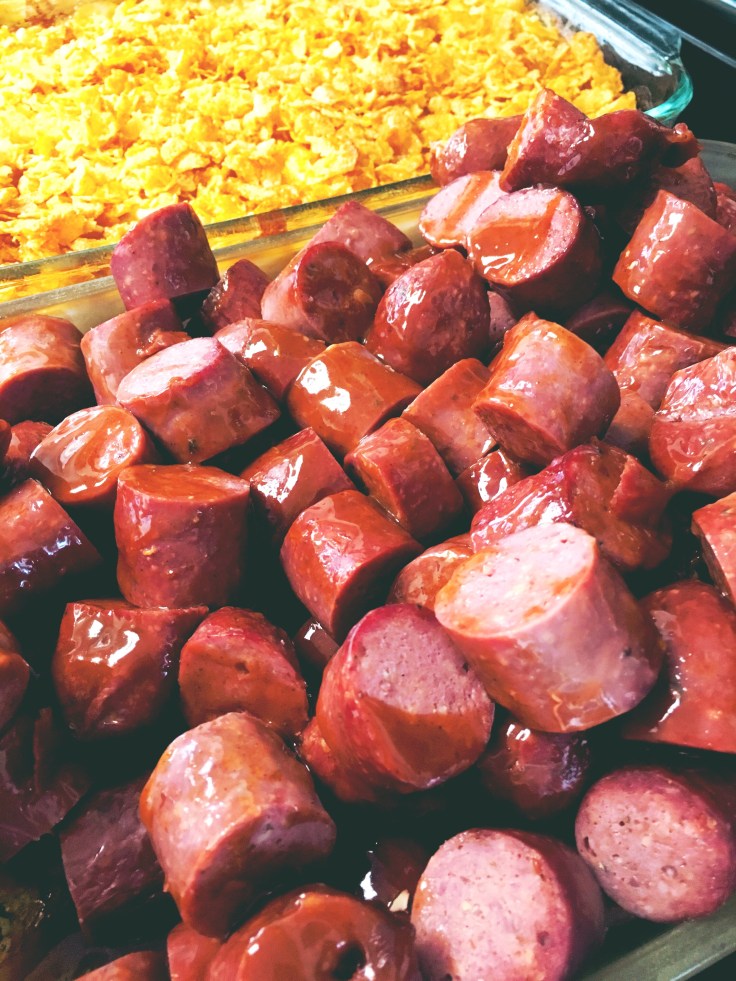one of the dished Grandma Swan was most famous for was THE BEST hash brown casserole ever… the men in this household filled the freezer with deer sausage this last winter so I used some of that to go with the hash brown casserole…