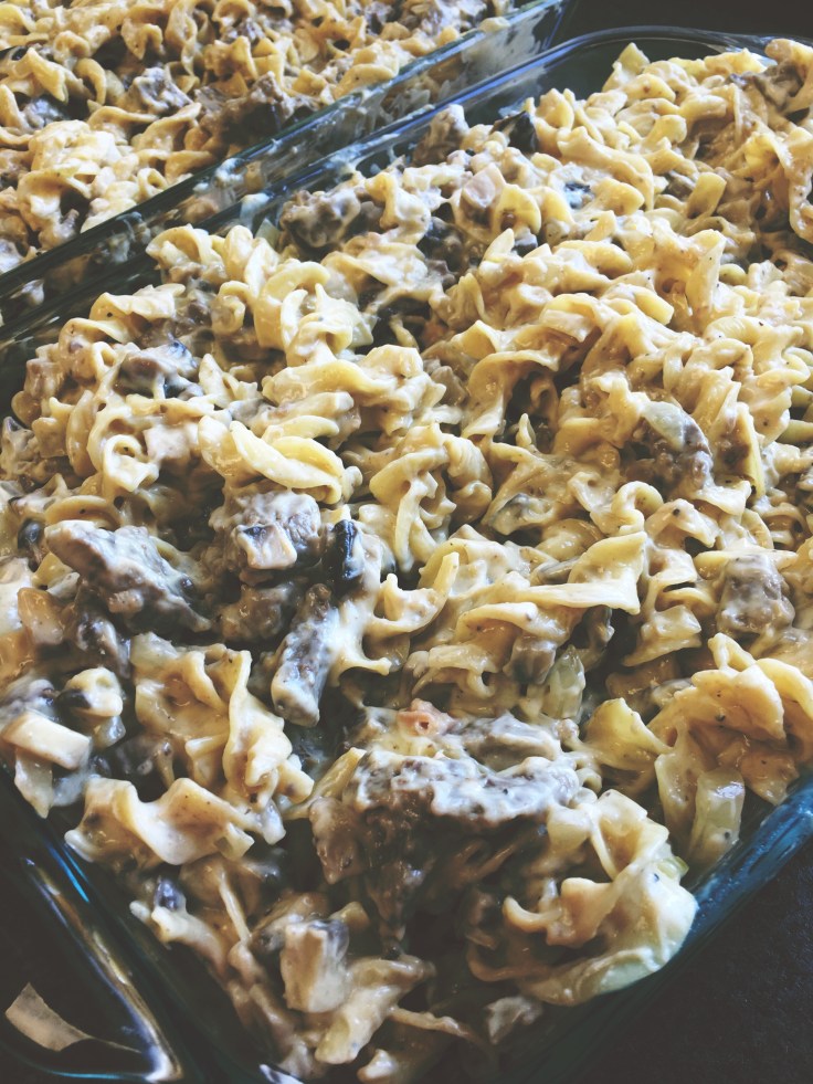 this dish is a harvest classic and one of the farmer’s favourites… I made it into casseroles and covered them to cook them… generally I would have just made the beef/soup mixture up and poured it over the egg noodles but I found this way was a bit easier for packing up…