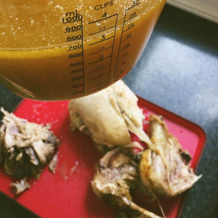 • use a fresh or defrosted chicken – I defrost mine in the bag it is in, in cold water in the sink – this generally takes around 3-4 hours