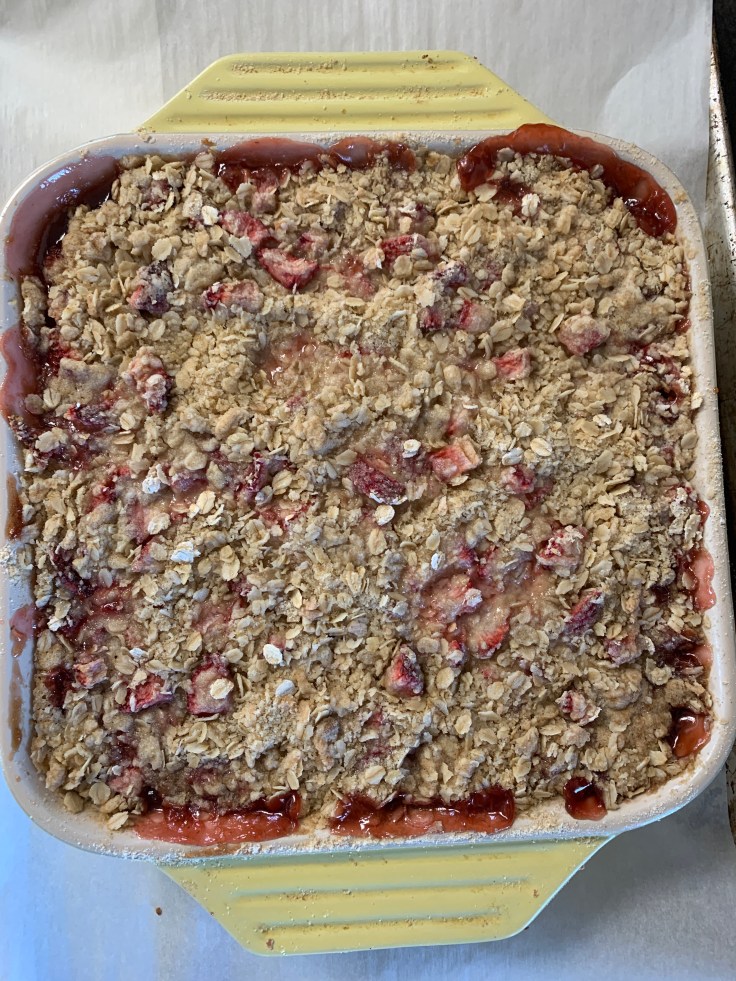 – make the crumble: combine oats, flour, sugars, baking soda, cinnamon, ginger and salt