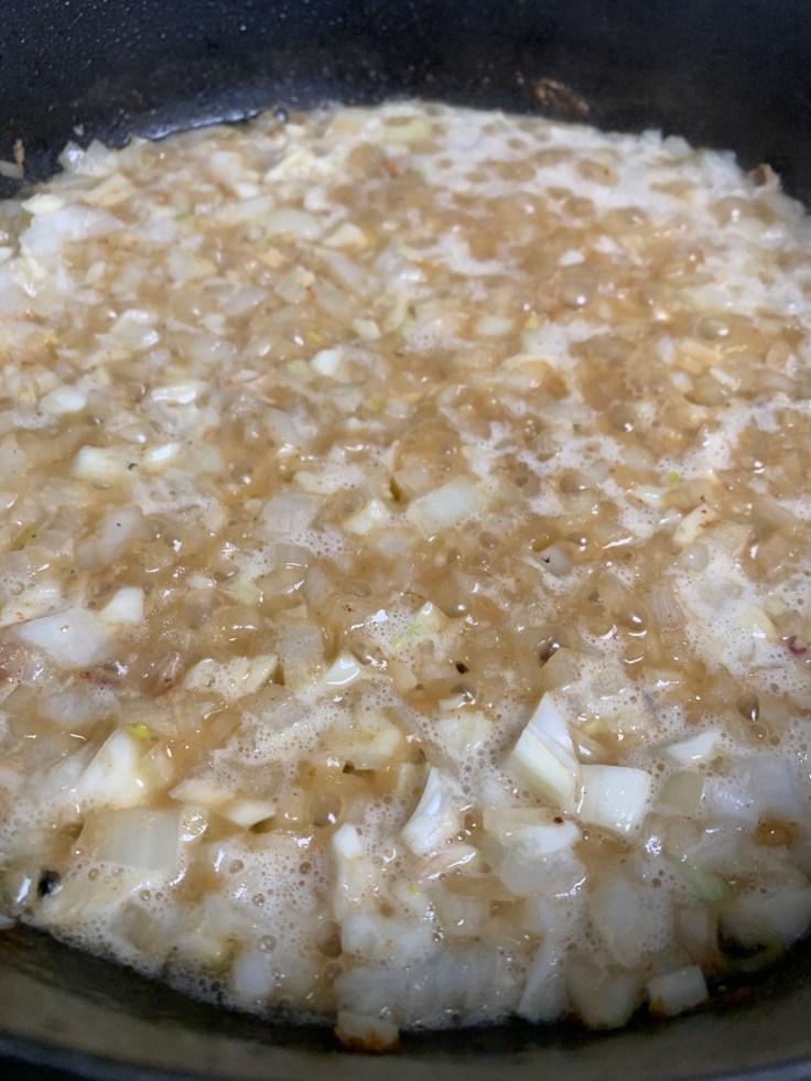 – stir in mustard and stock, lower heat and simmer until reduced by half