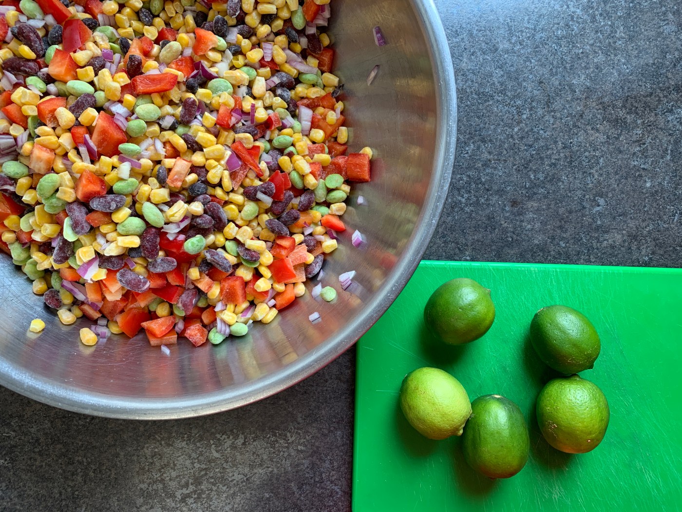 – 8 cups Vitality Blend frozen edamame beans, black beans, kidney beans and corn