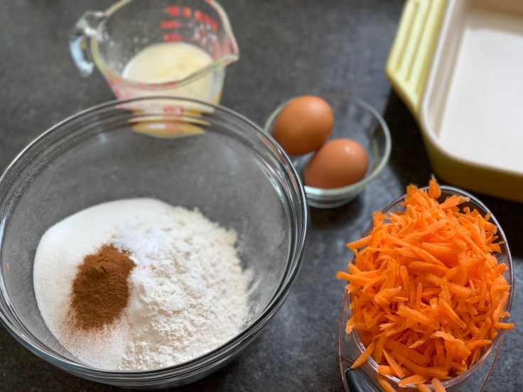 – combine all together the egg mixture, flour mixture and shredded carrots