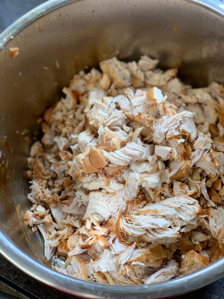 with the Instant Pot – cook skinless, chicken breasts for 10 minutes on manual with some bbq sauce, drain, shred and place back in the pot with some bbq sauce on slow cook for the perfect shredded chicken