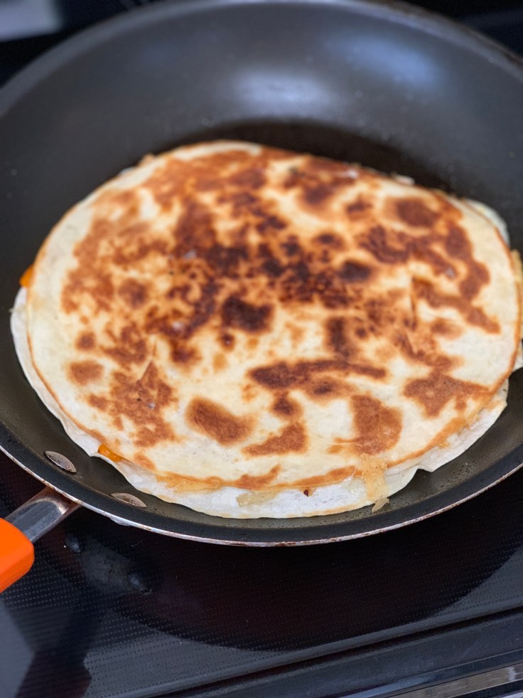– when it is time to flip, lightly spray the tortilla shell with cooking spray